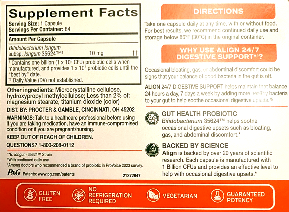 Align Probiotic Supplement 24/7 Digestive Support 84 Count EXP 04/2028