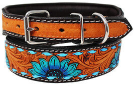 Medium 17''- 21'' Padded Leather Dog Collar Floral Hand Tooled 60HR07TR