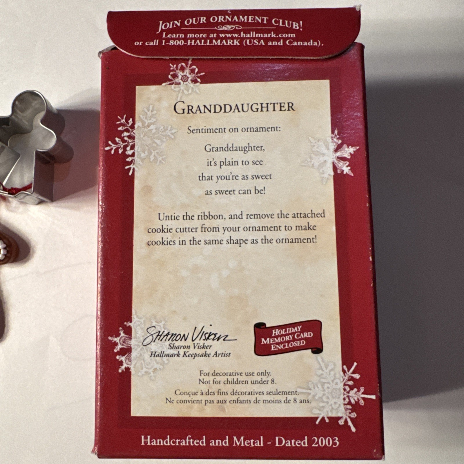 Hallmark Gingerbread cookie cutter Granddaughter Keepsake Ornament Christmas c