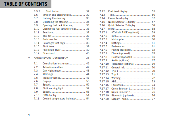 KTM 2020 - 390 DUKE - OWNERS MANUAL USER GUIDE