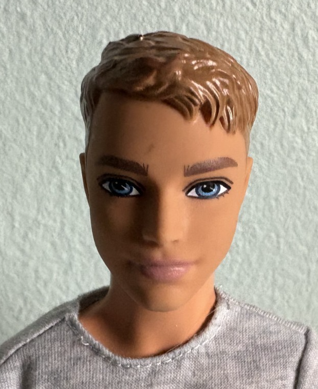 2016 Mattel Ken Doll: FWV15 N491, Sandy Blonde Molded Hair, Blue Eyes, Rigid Body. Very Good Used Condition - See Photos for further description - Doll Stand Not Included.