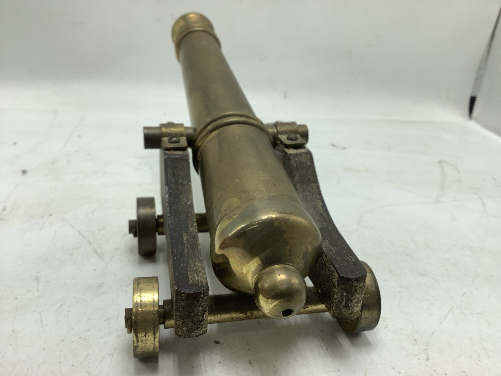 Vintage Brass Naval Cannon Replica 7.5" Barrel with wheels