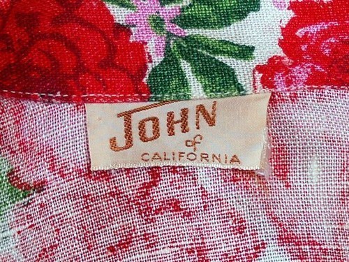 Vtg 50s Red Linen Skirt Printed Jacket Set Salon Lentheric John of California S