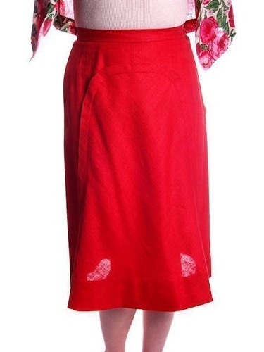 Vtg 50s Red Linen Skirt Printed Jacket Set and similar items