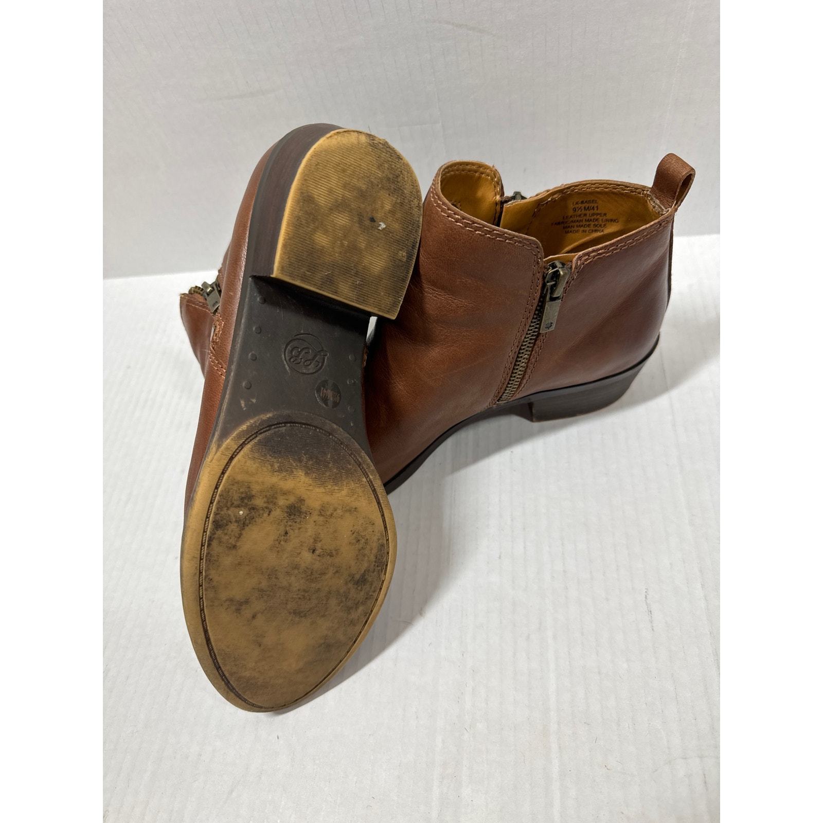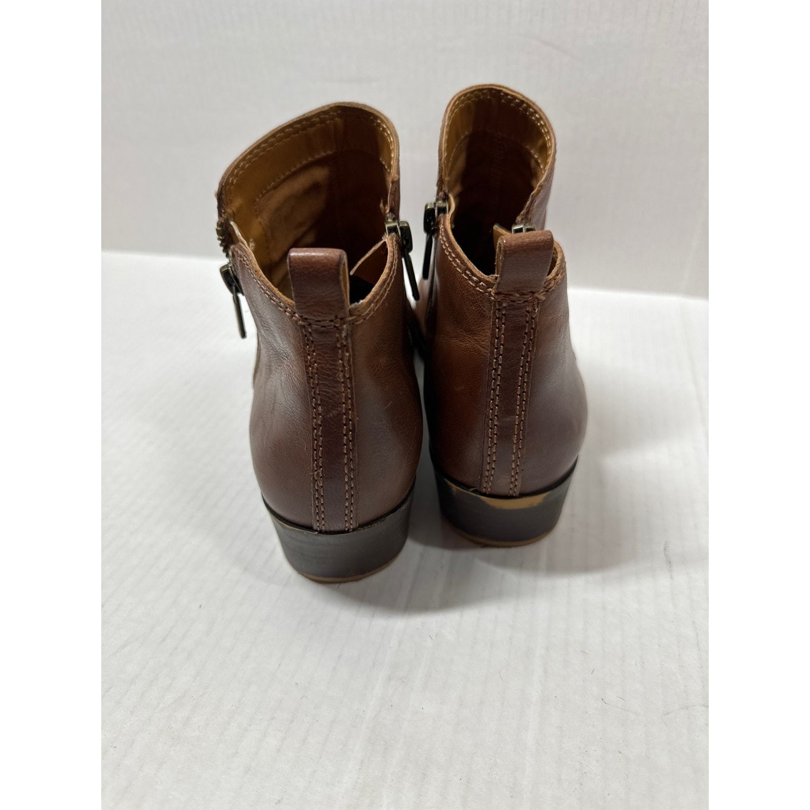 Lucky Brand Basel Boots Side Zip Ankle Bootie Brown Leather Low Heel Womens 9.5This item has been cleaned pers used clothing policy.