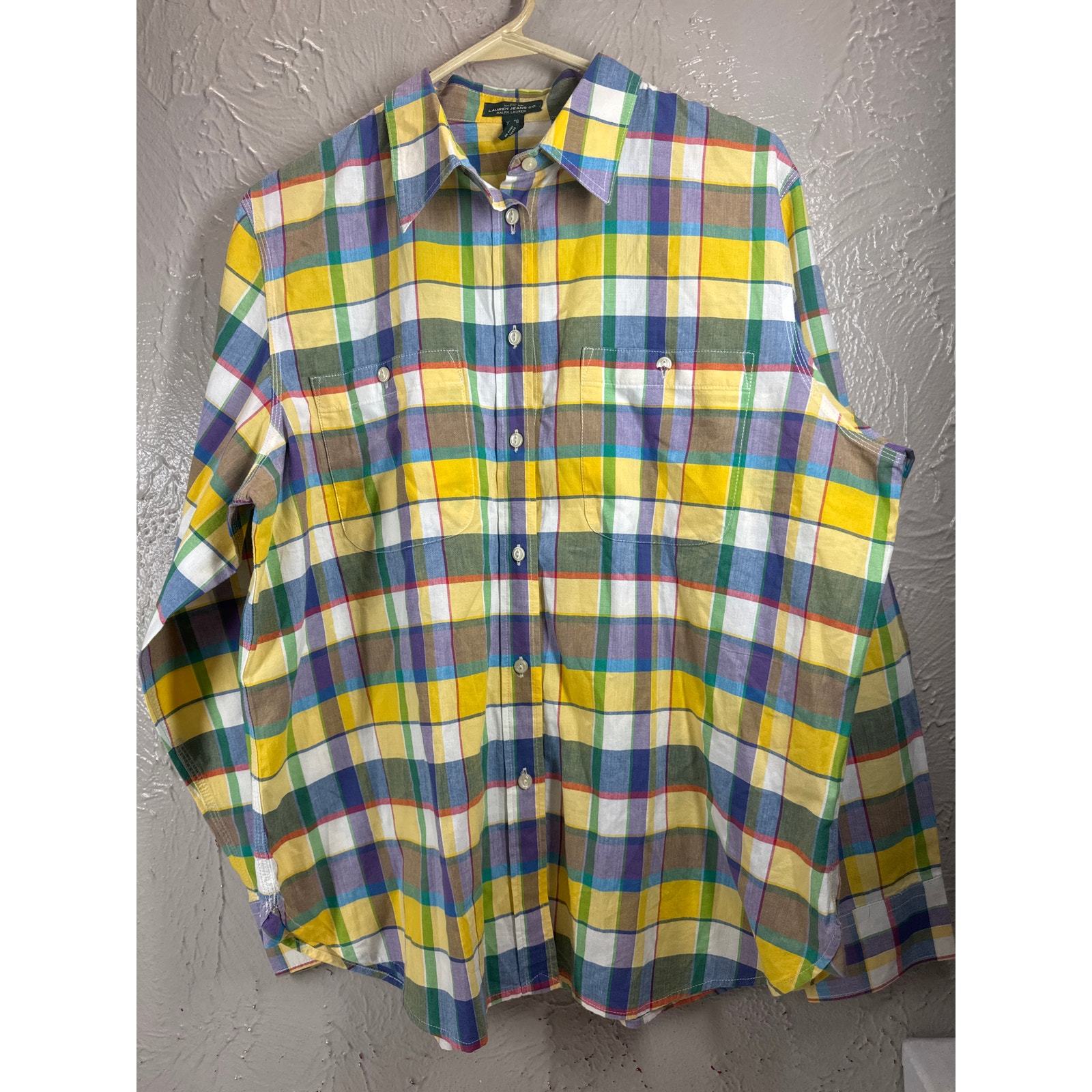 Lauren Ralph Lauren Shirt Women's Plaid Preppy Casual Roll Tab Sleeve Size XL
