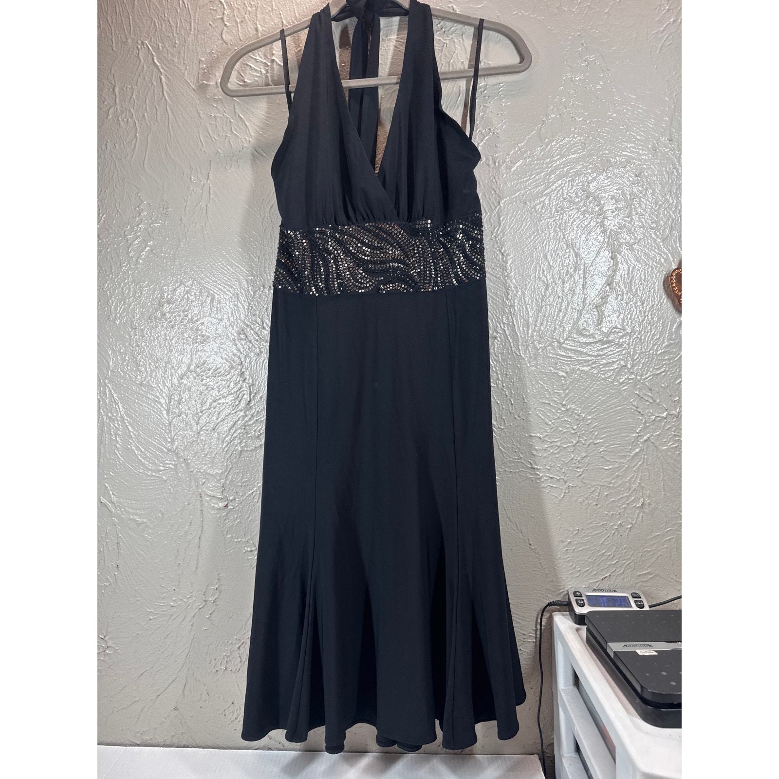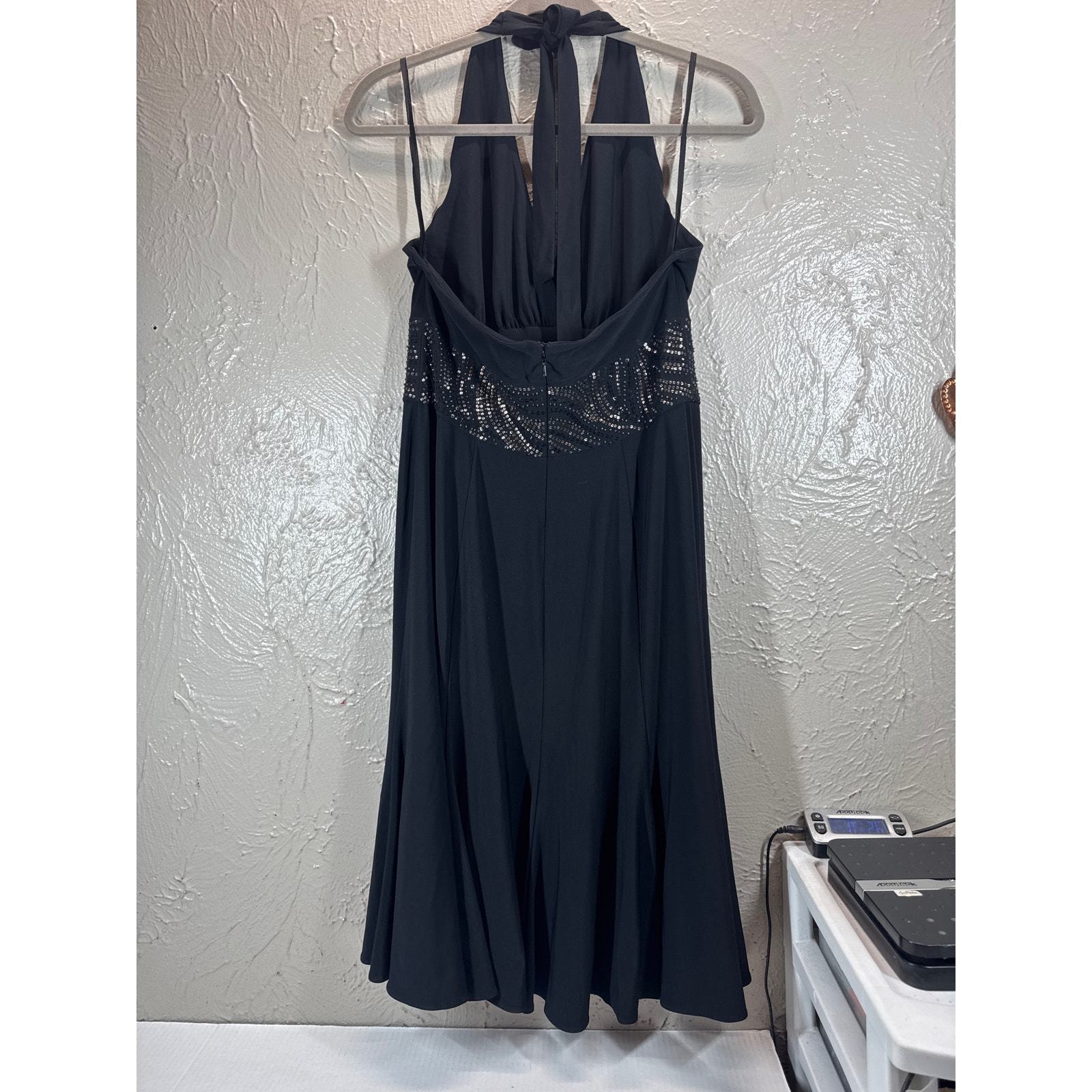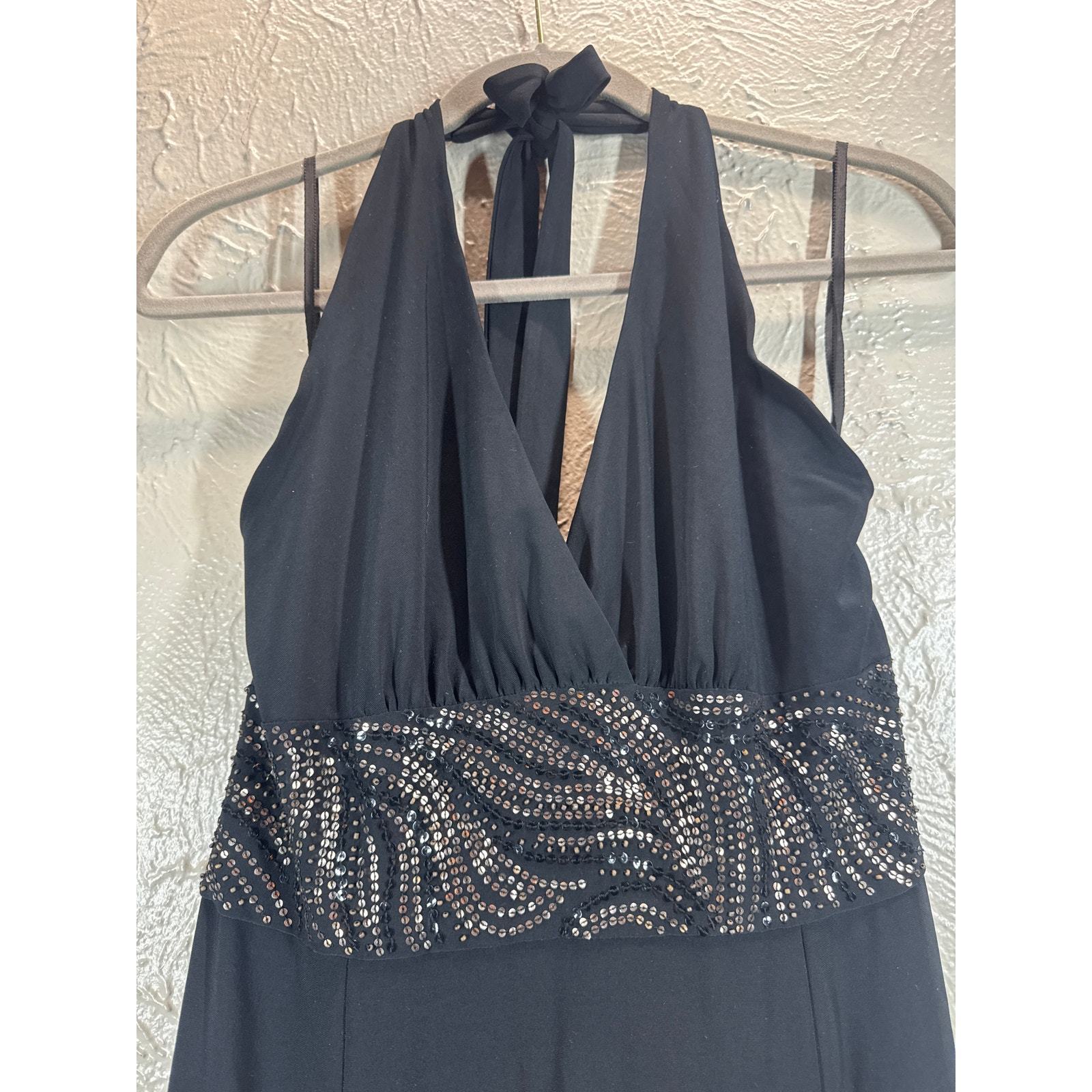 Jones New York Black Sequin Halter Adjustable Evening Dress Womens Size 10