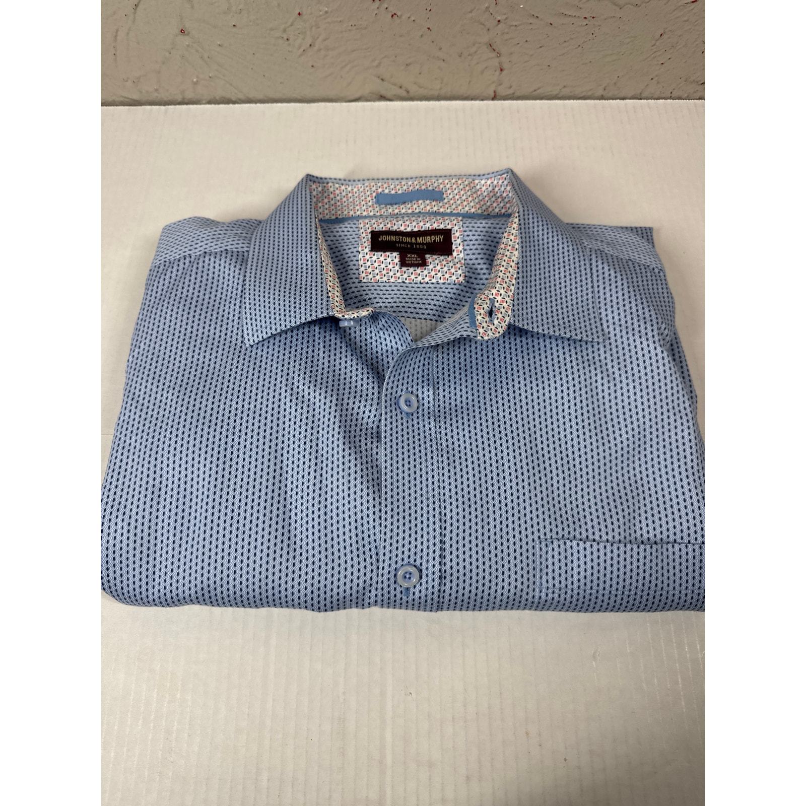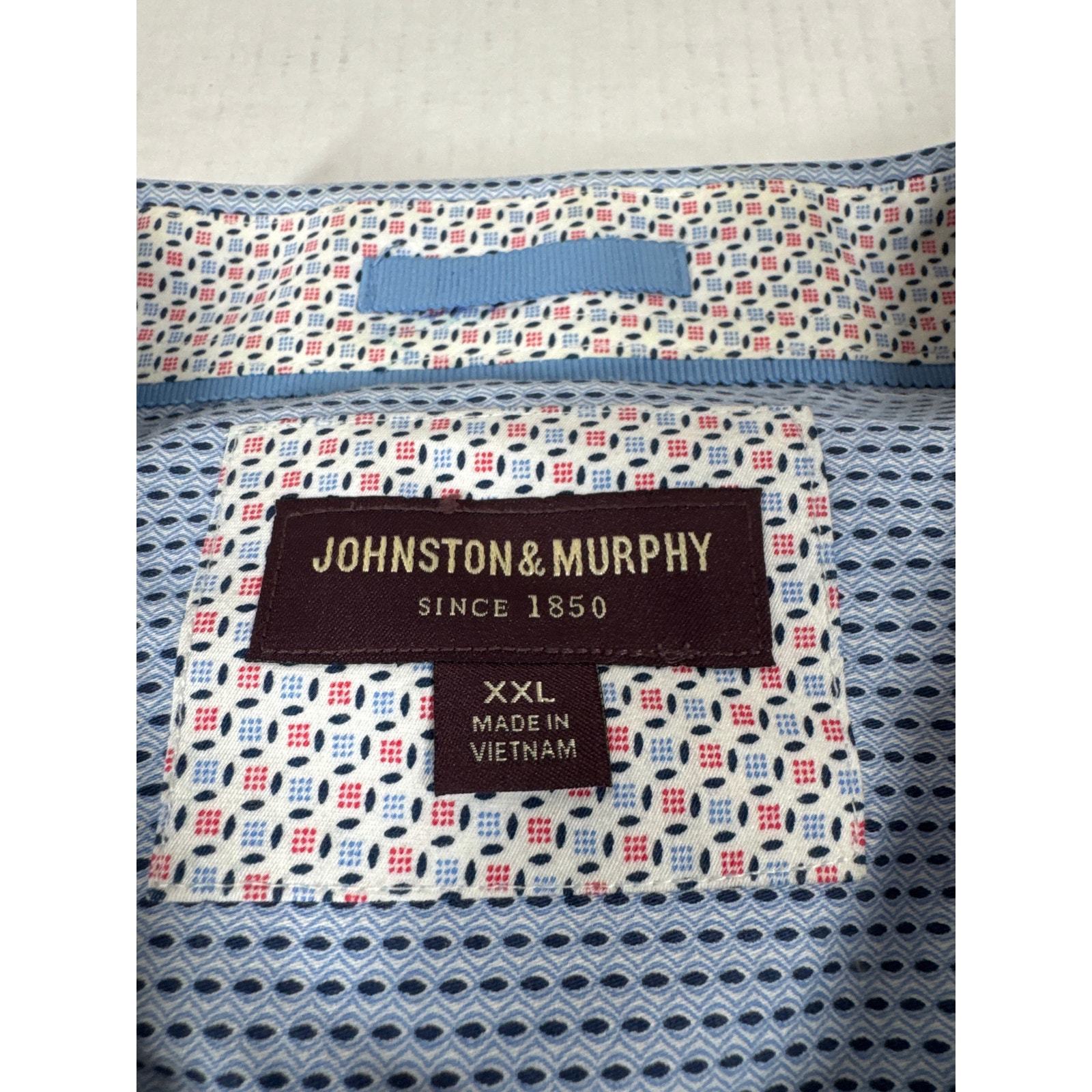 Johnston Murphy White Long Sleeve Button Up Blue Pattern Shirt Mens Sz XXL