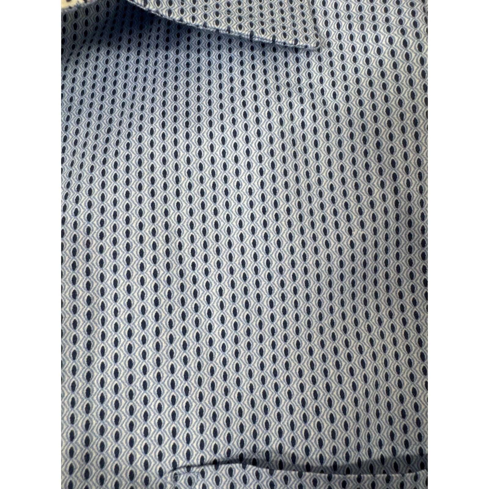 Johnston & Murphy White Long Sleeve Button Up Blue Pattern Shirt Mens Sz XXL