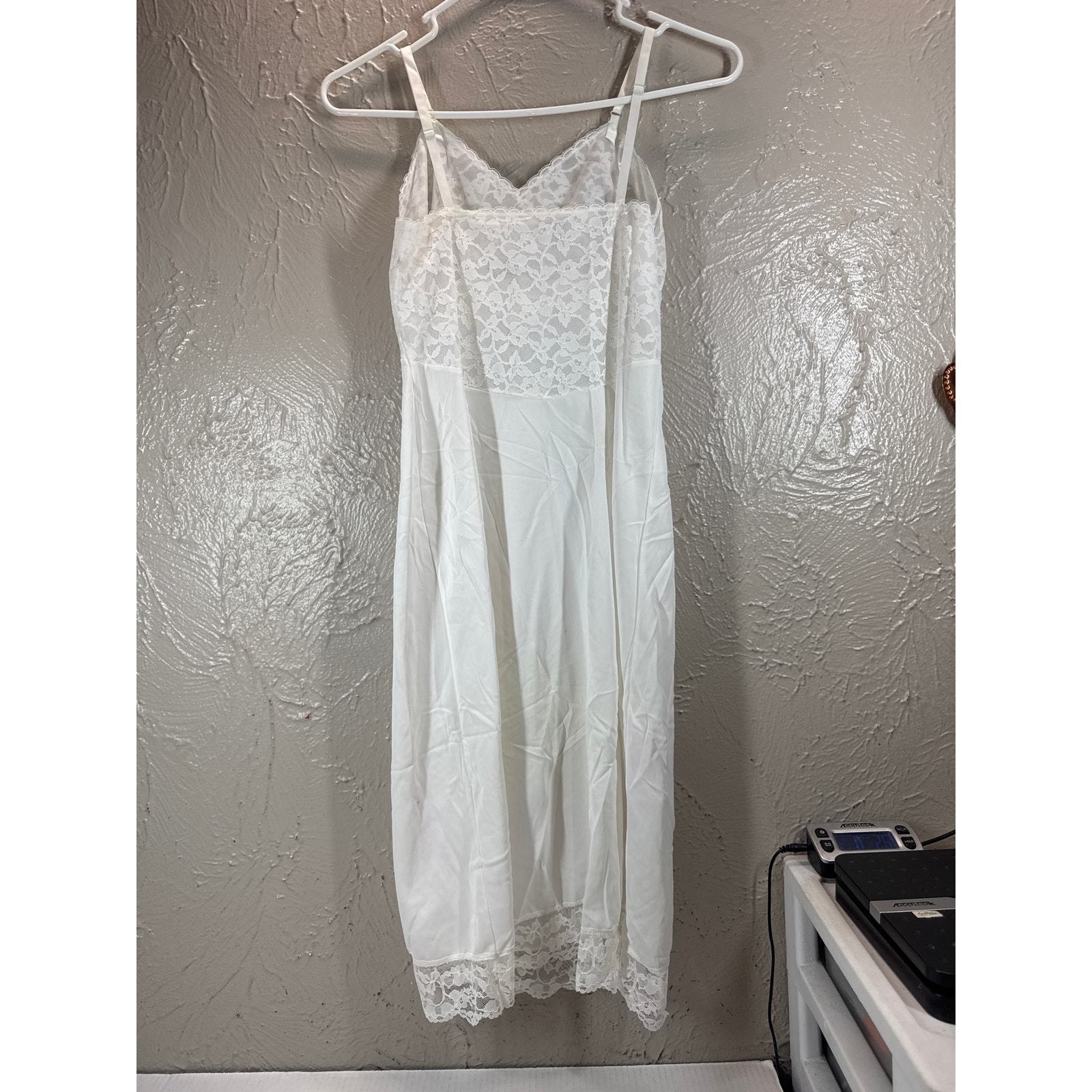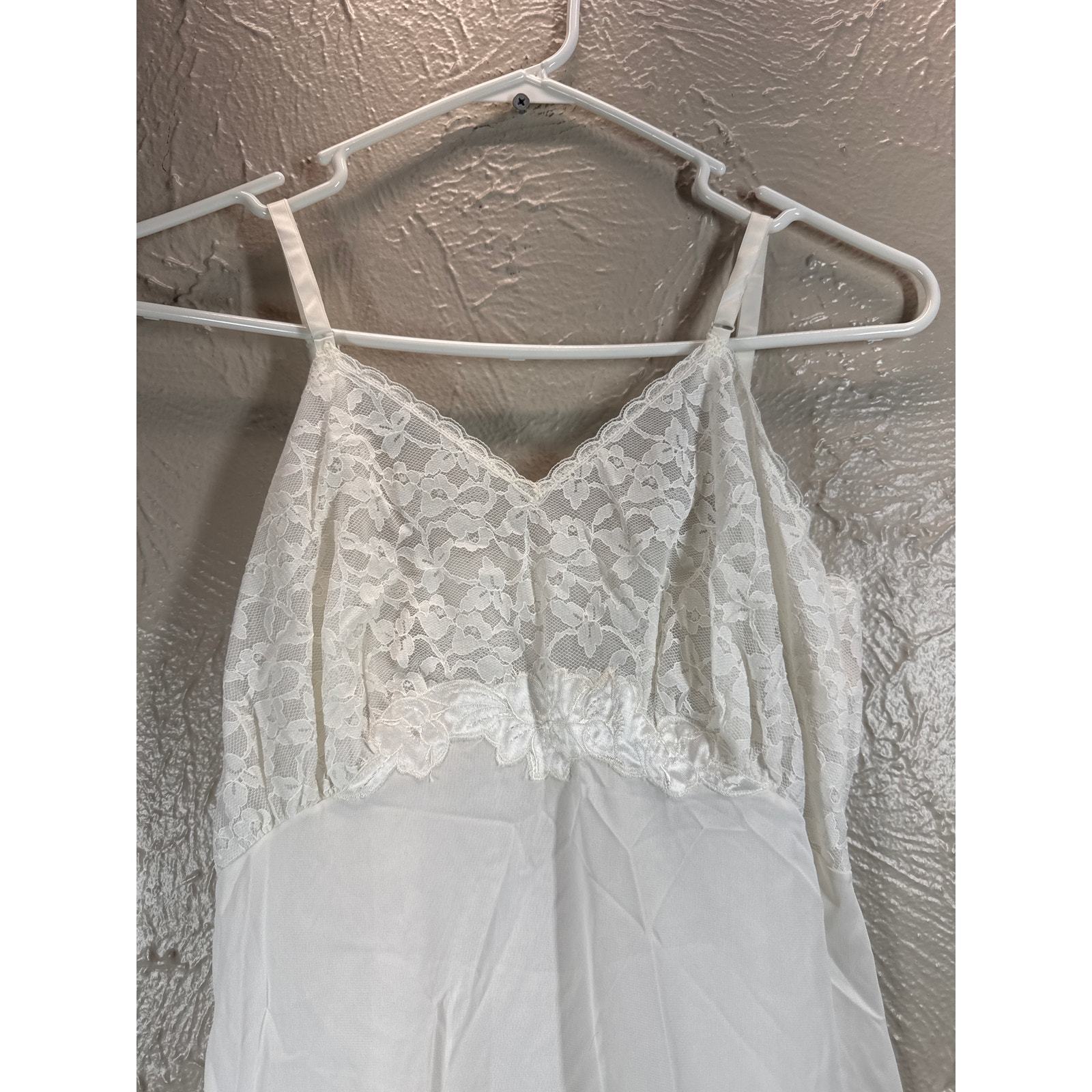 Vintage Seamprufe Womens Slip Dress Short White Satin Lace Victorian 60s Size 34