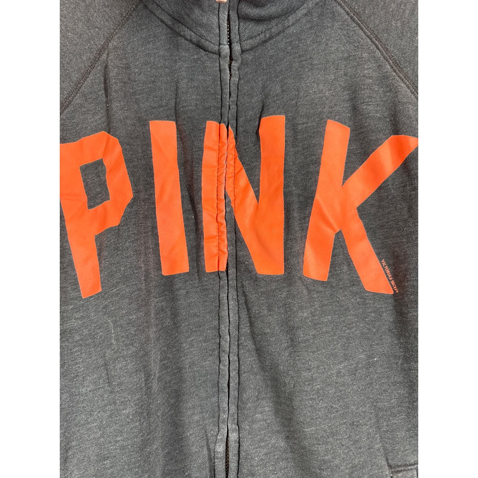 PINK Victoria's Secret Sweatshirt Full Zip Gray Coral Spellout Mock Neck Medium