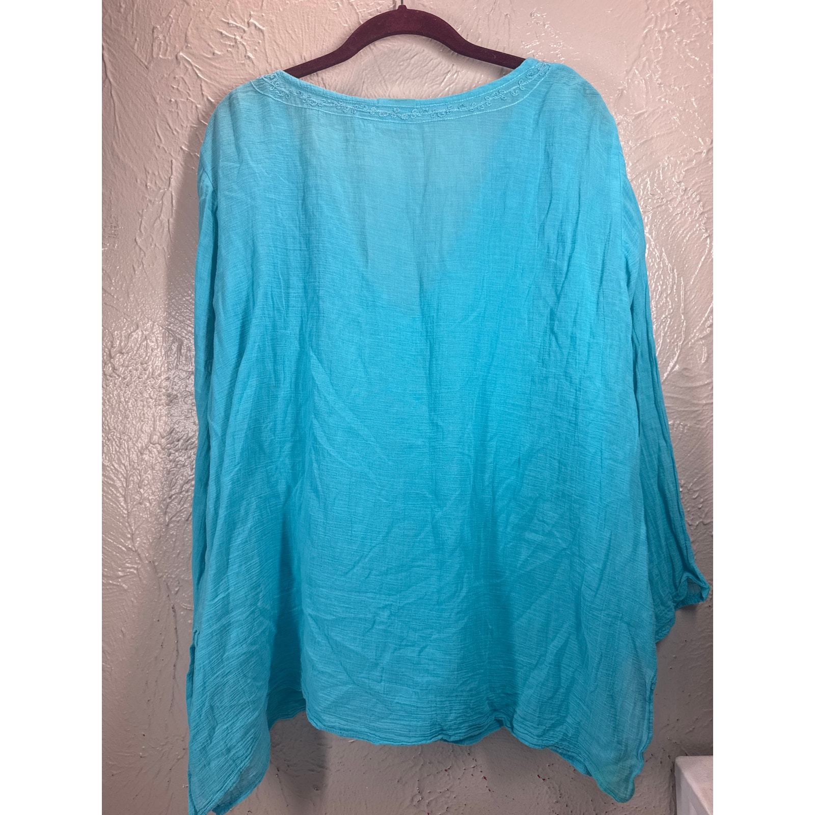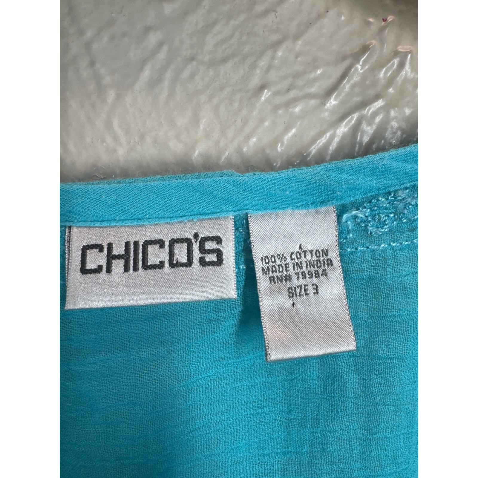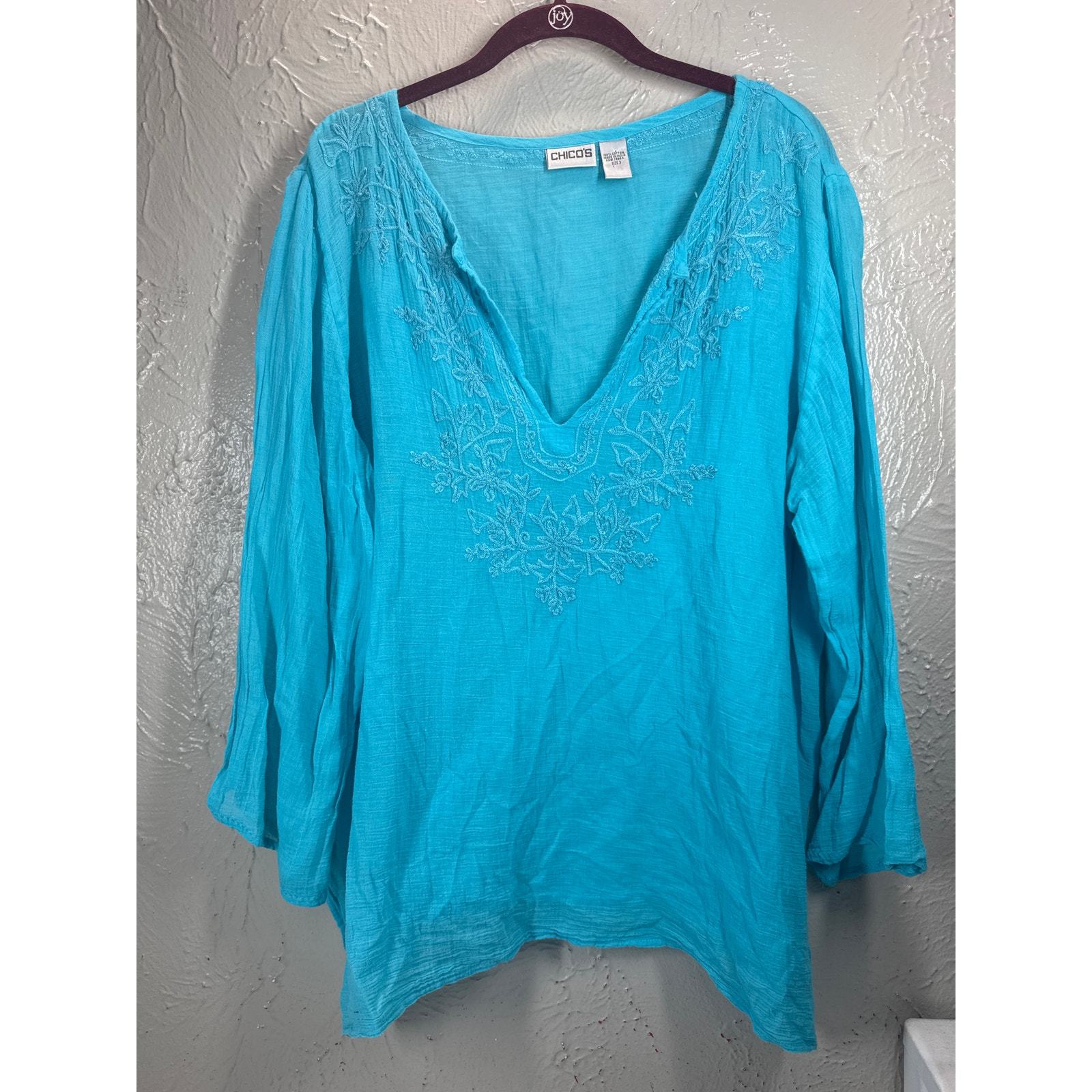 Chico's Blue Cotton Embroidered Floral V Neck Long Sleeve Blouse Size 3 US XL/16