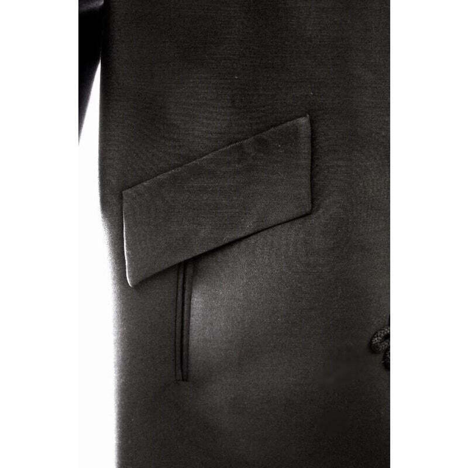 Fine black wool with silk sheen, silk frog closures, rayon lining.