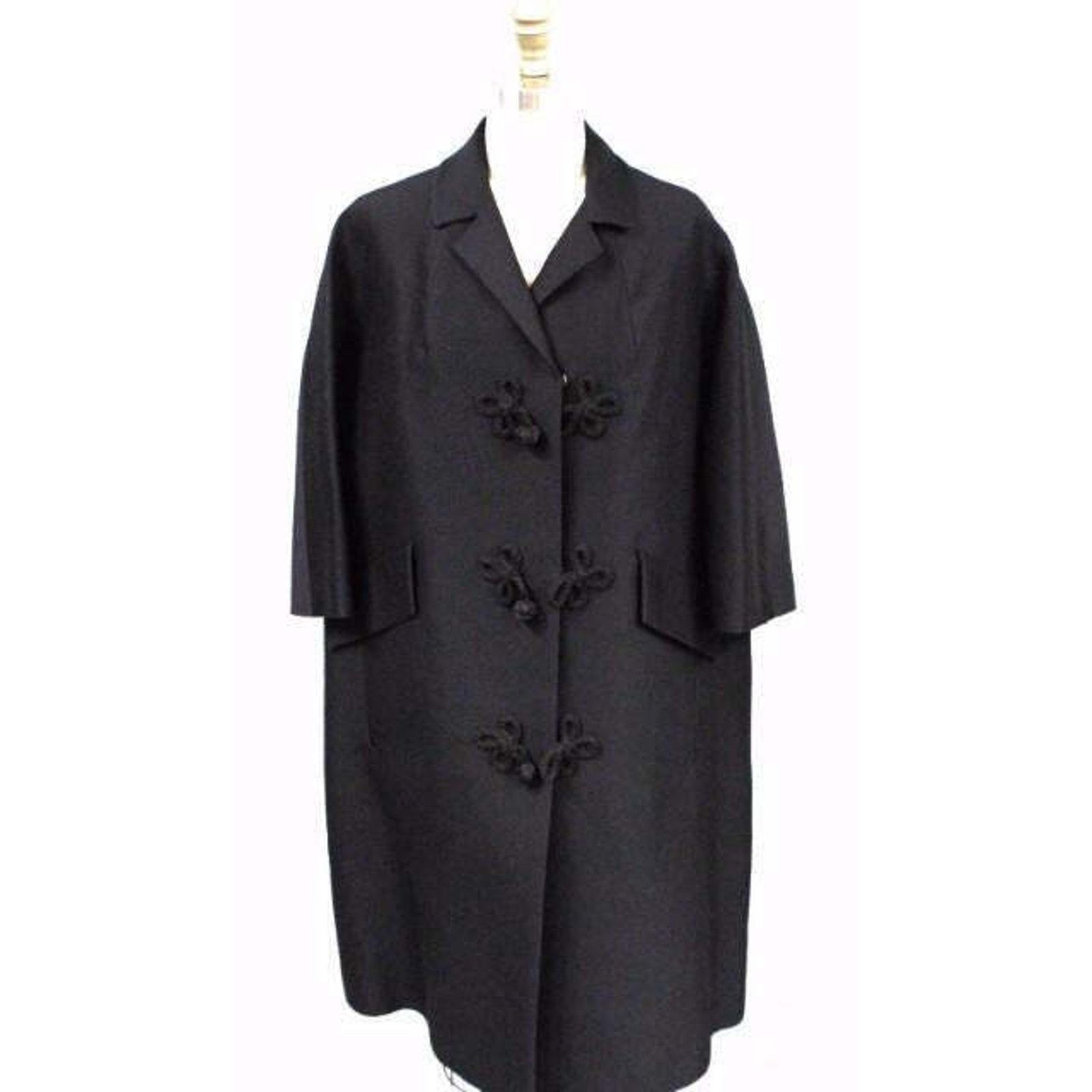 VTG 1950s Black Wool Sack Coat Asian Frog and 44 similar items