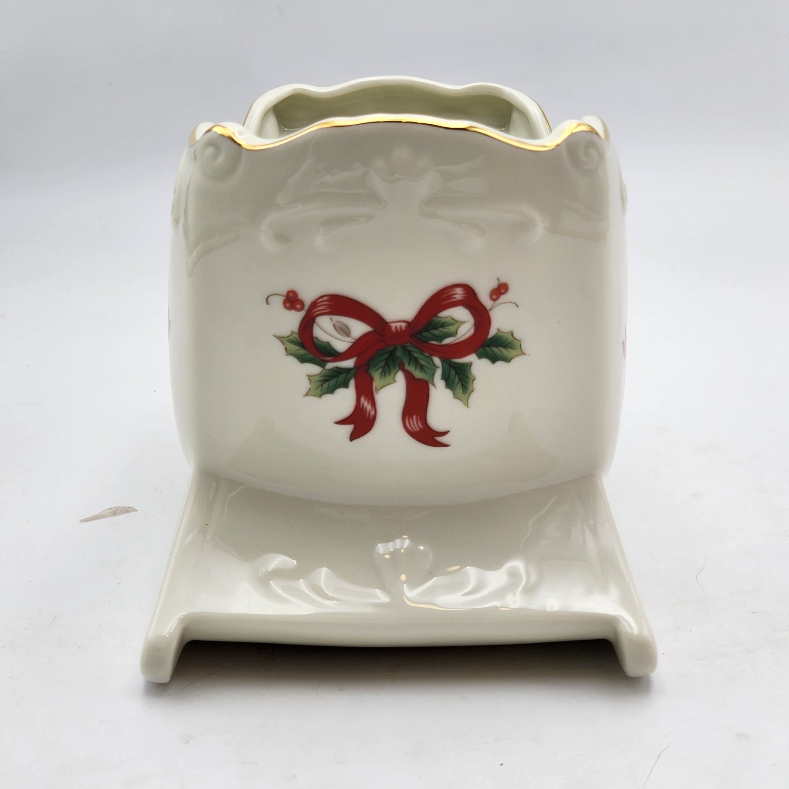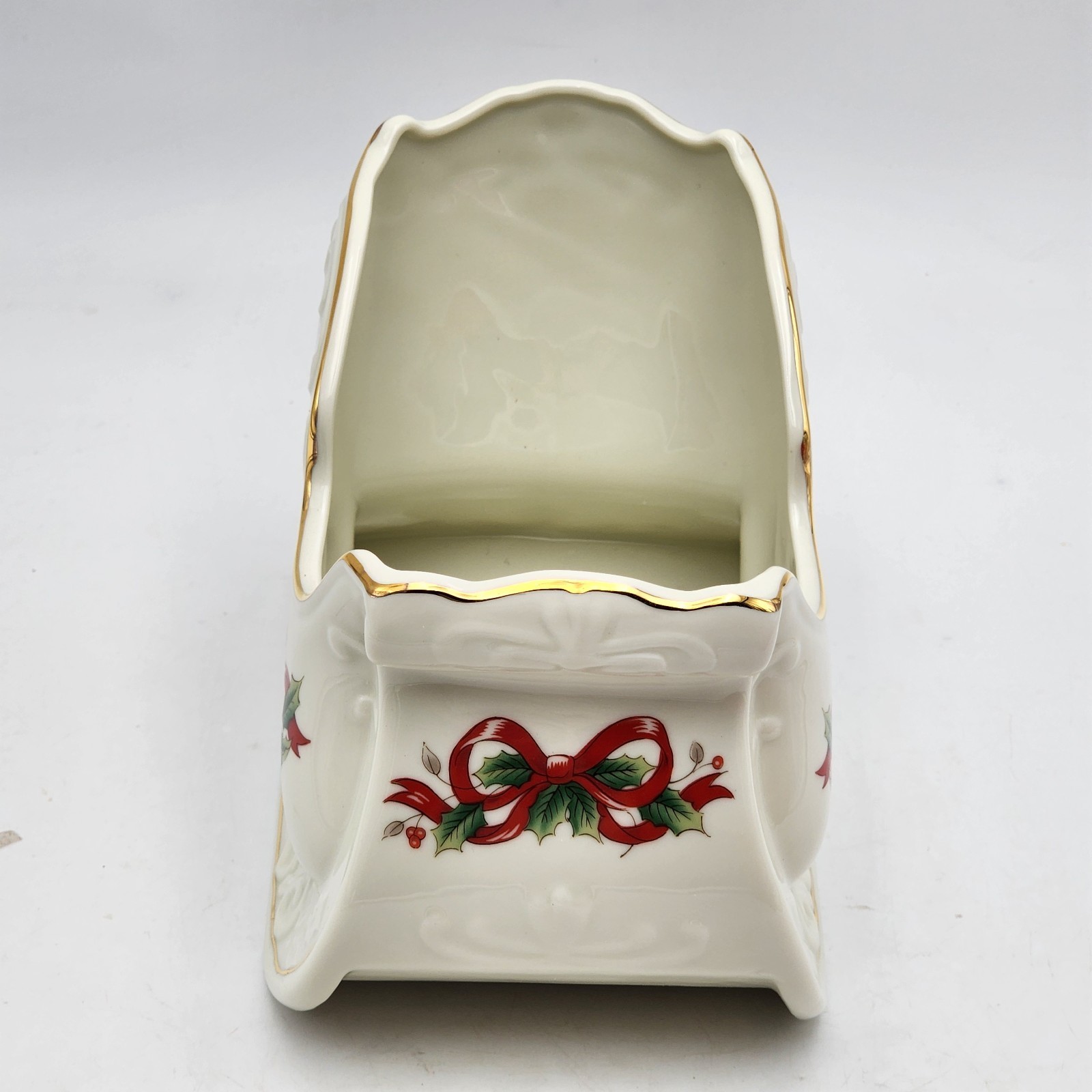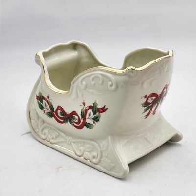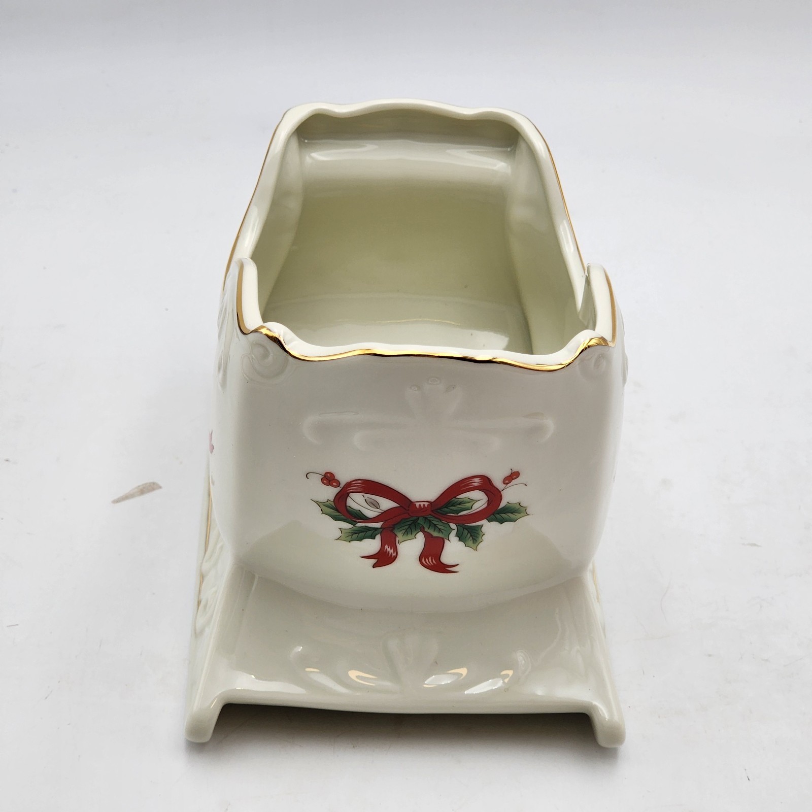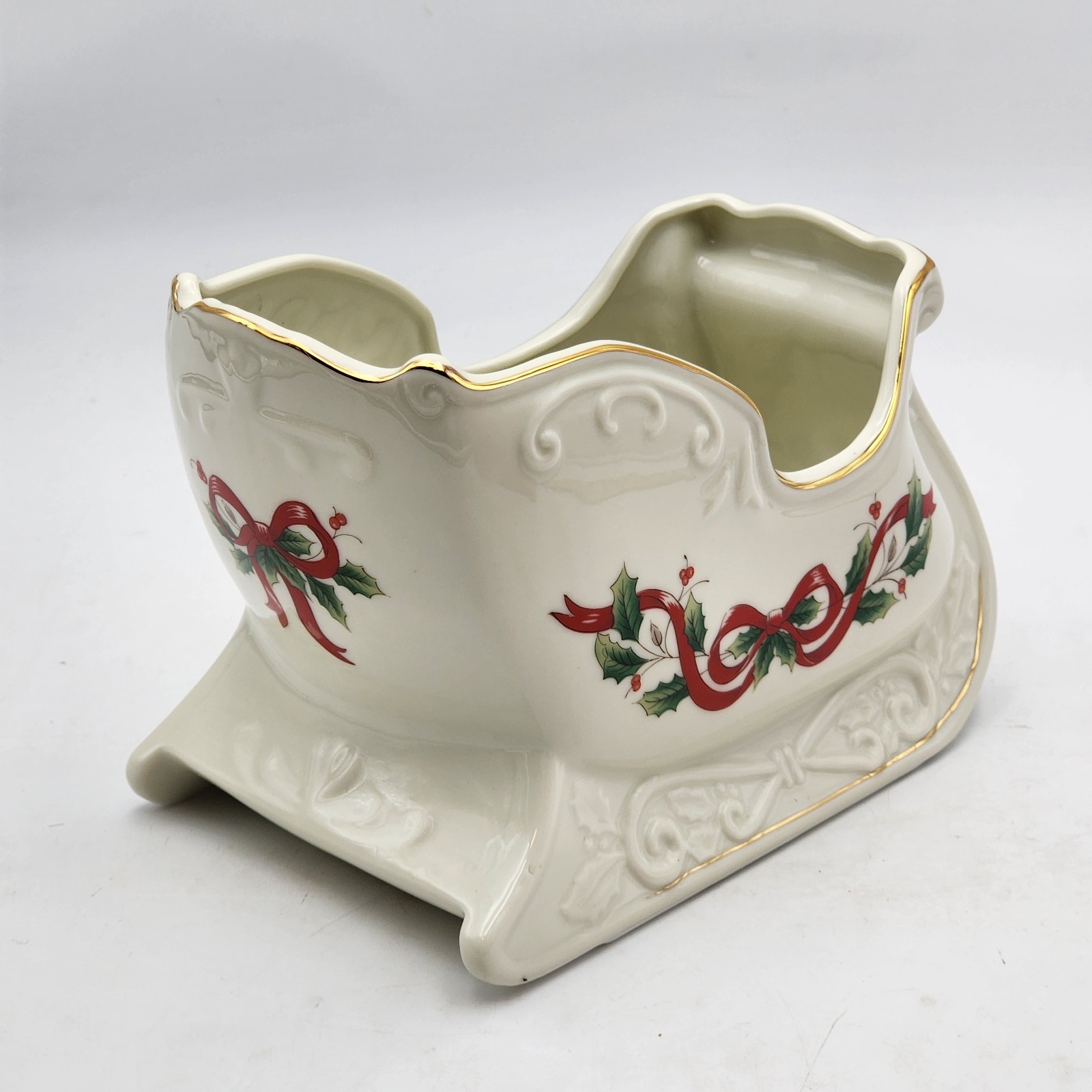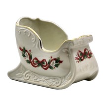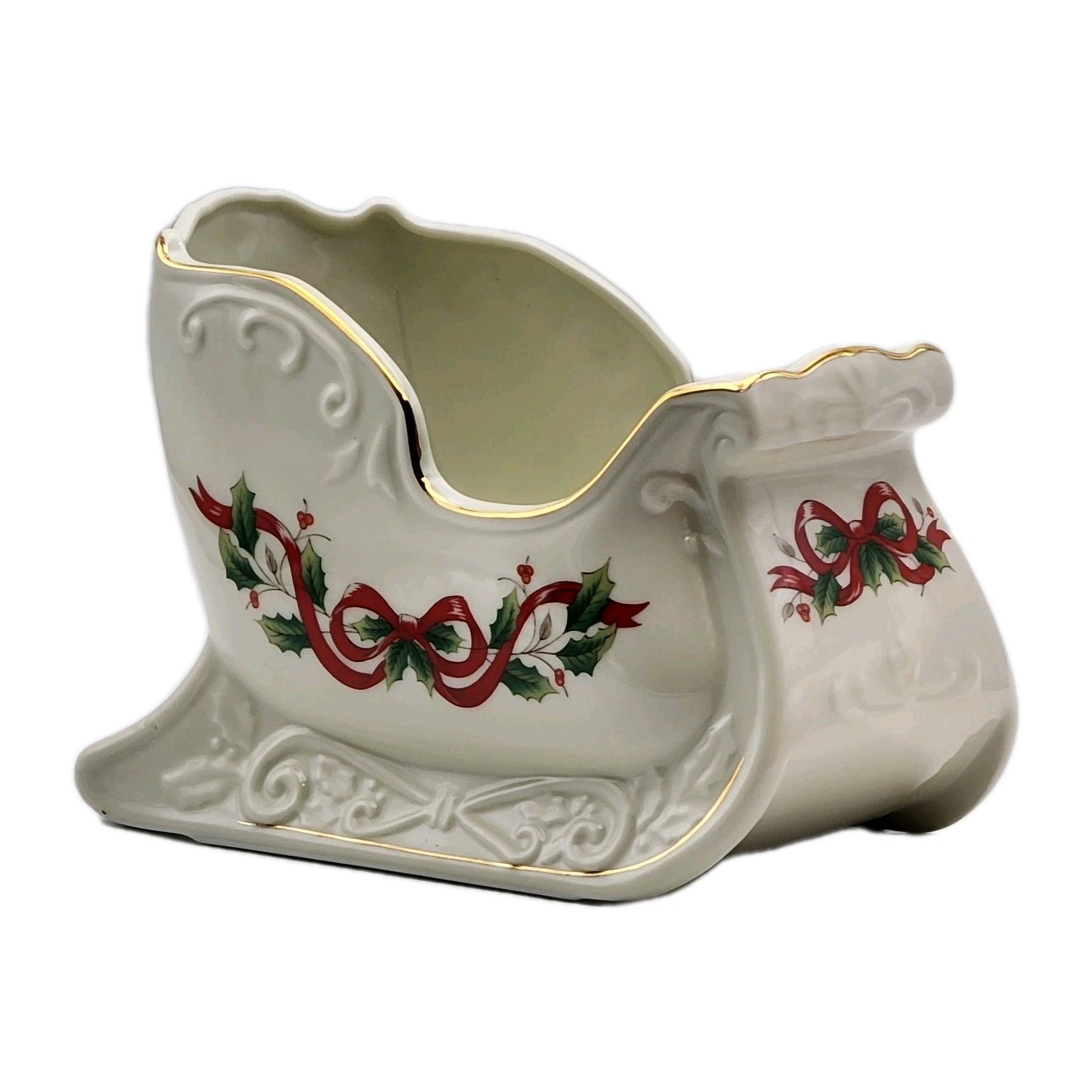 Royal Limited Holly Holiday Sleigh Centerpiece 8" Porcelain Gold Trim With Box