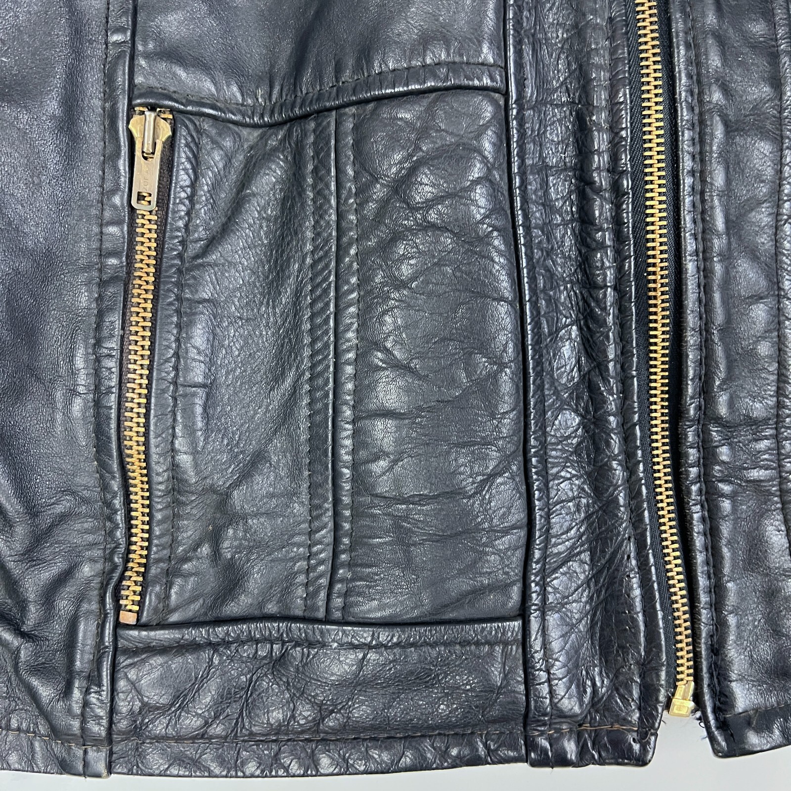 Rare-Vintage Mens Black Leather Motorcycle Jacket Talon Zippers Buckle Sides 40