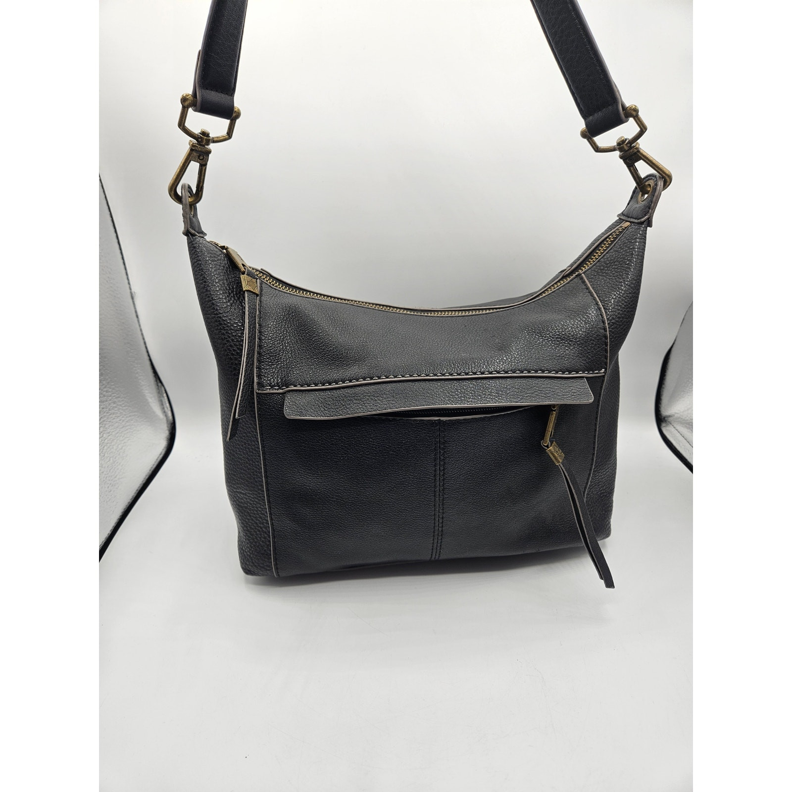 The Sak Women's Shoulder Bag Black Vegan Leather Zipper Pockets Medium