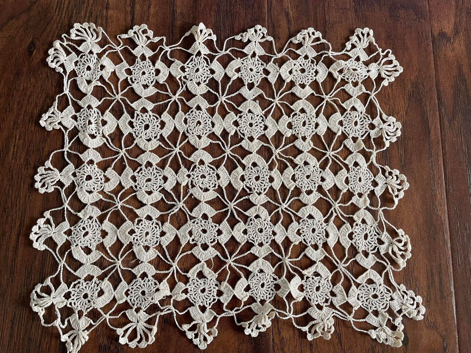 new HANDMADE Vintage 31" x 12" Crochet Lace Tablecloth + 2 Napkins Home Decor