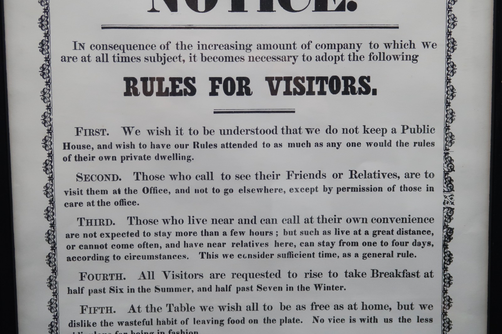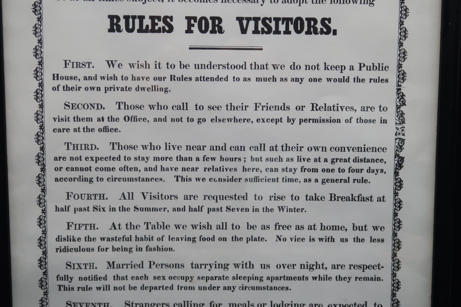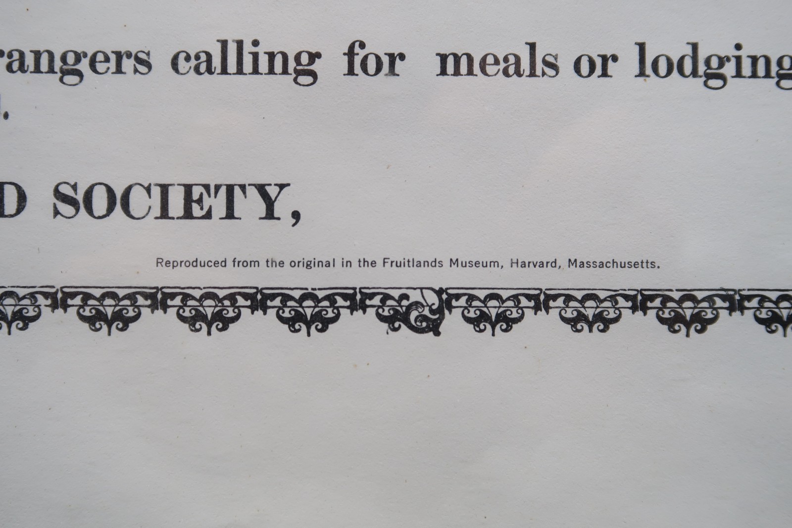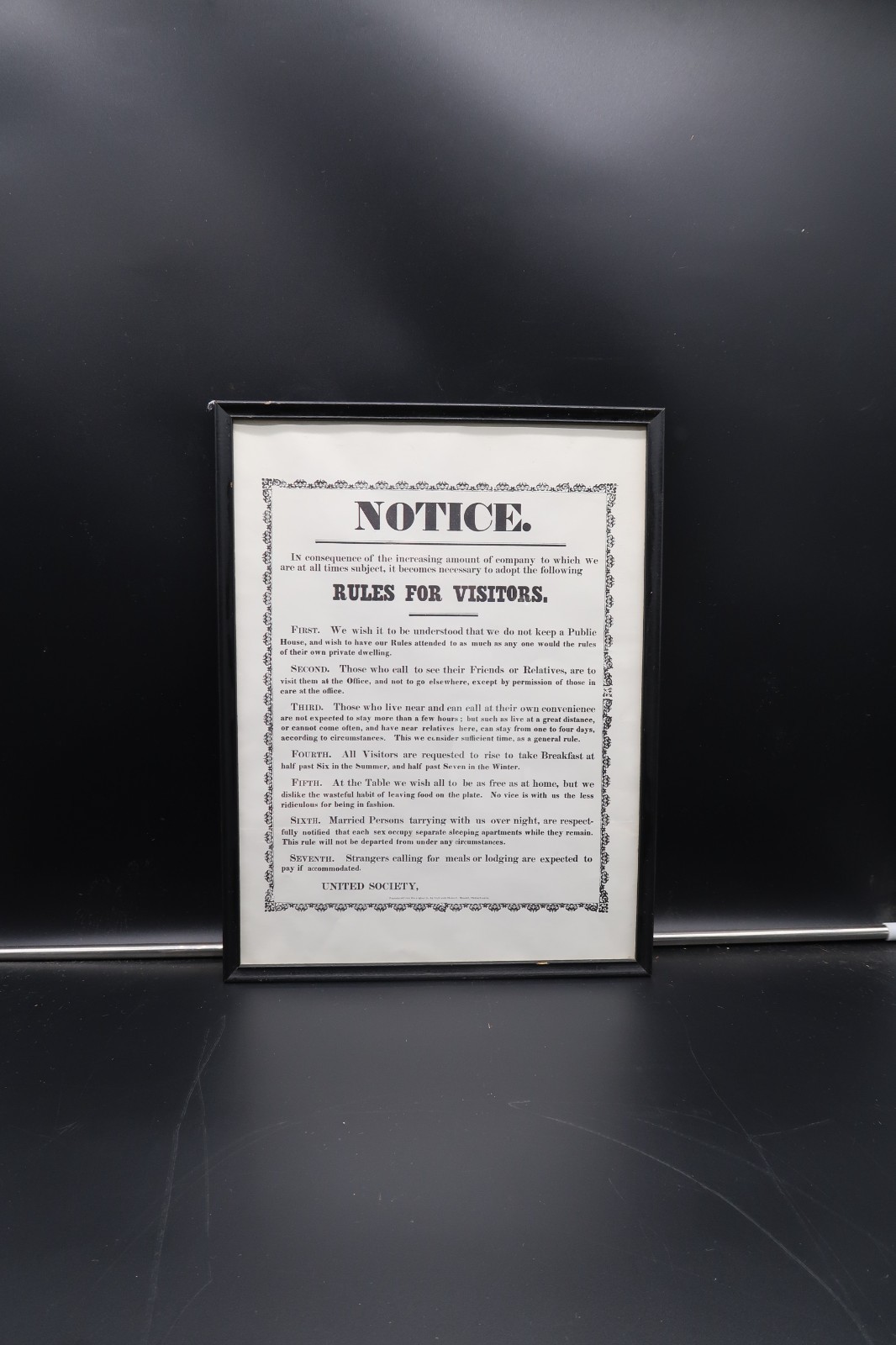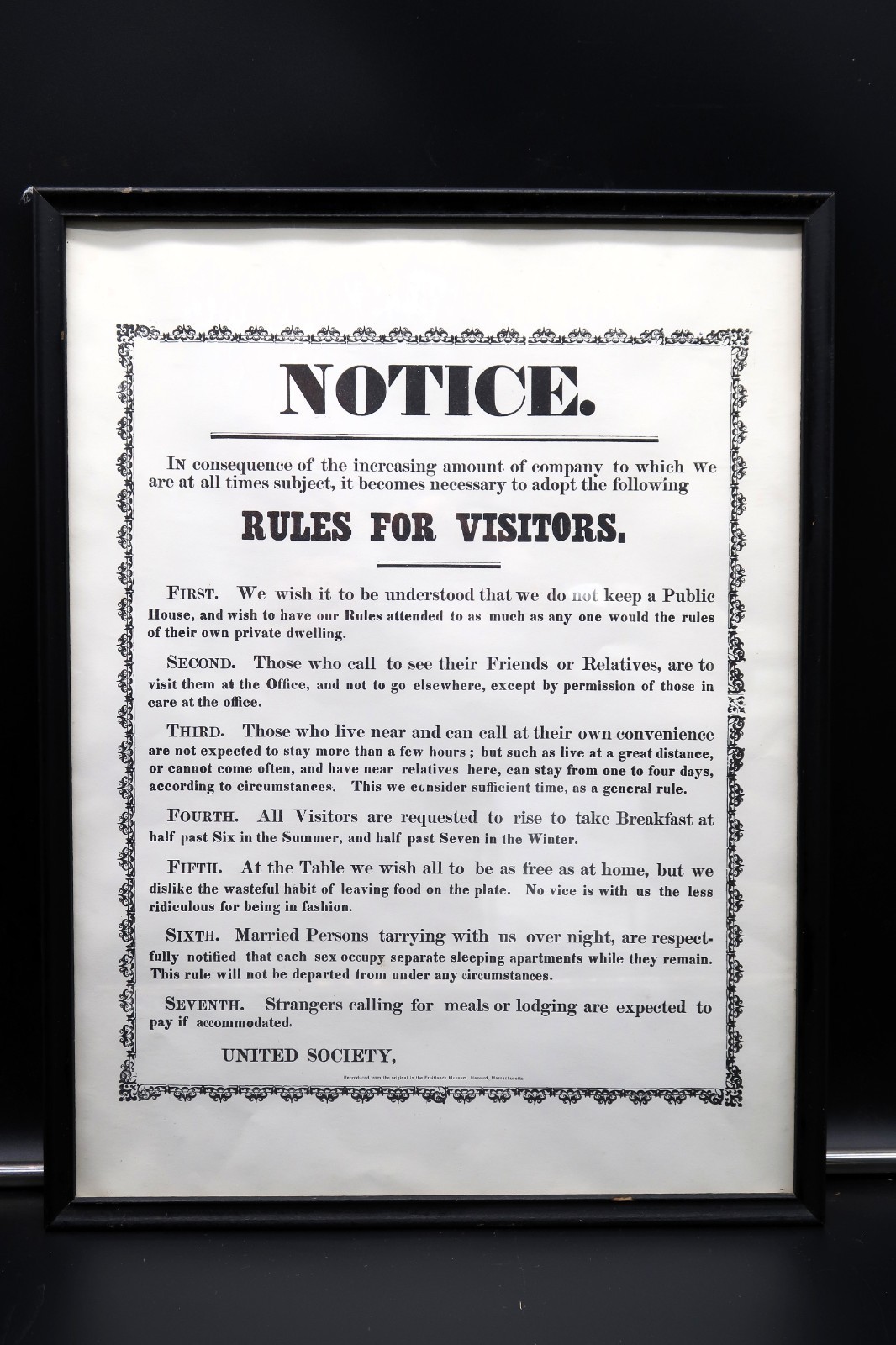 Vtg Reproduction Rules for Visitors Hancock Shakers Fruitland Museum Harvard MA