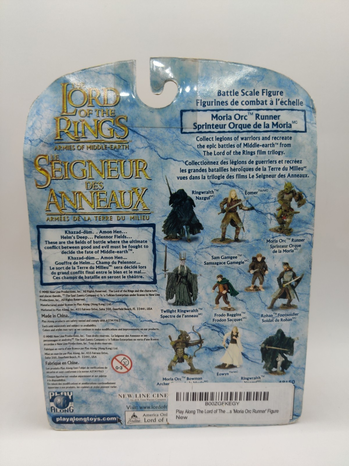 This vintage LORD OF THE RINGS Battle Scale Figure Moria Orc Runner by Play Along Toys in 2003 depicts a 2.5" miniature action figure from the movie "The Lord of the Rings - The Return of the King."