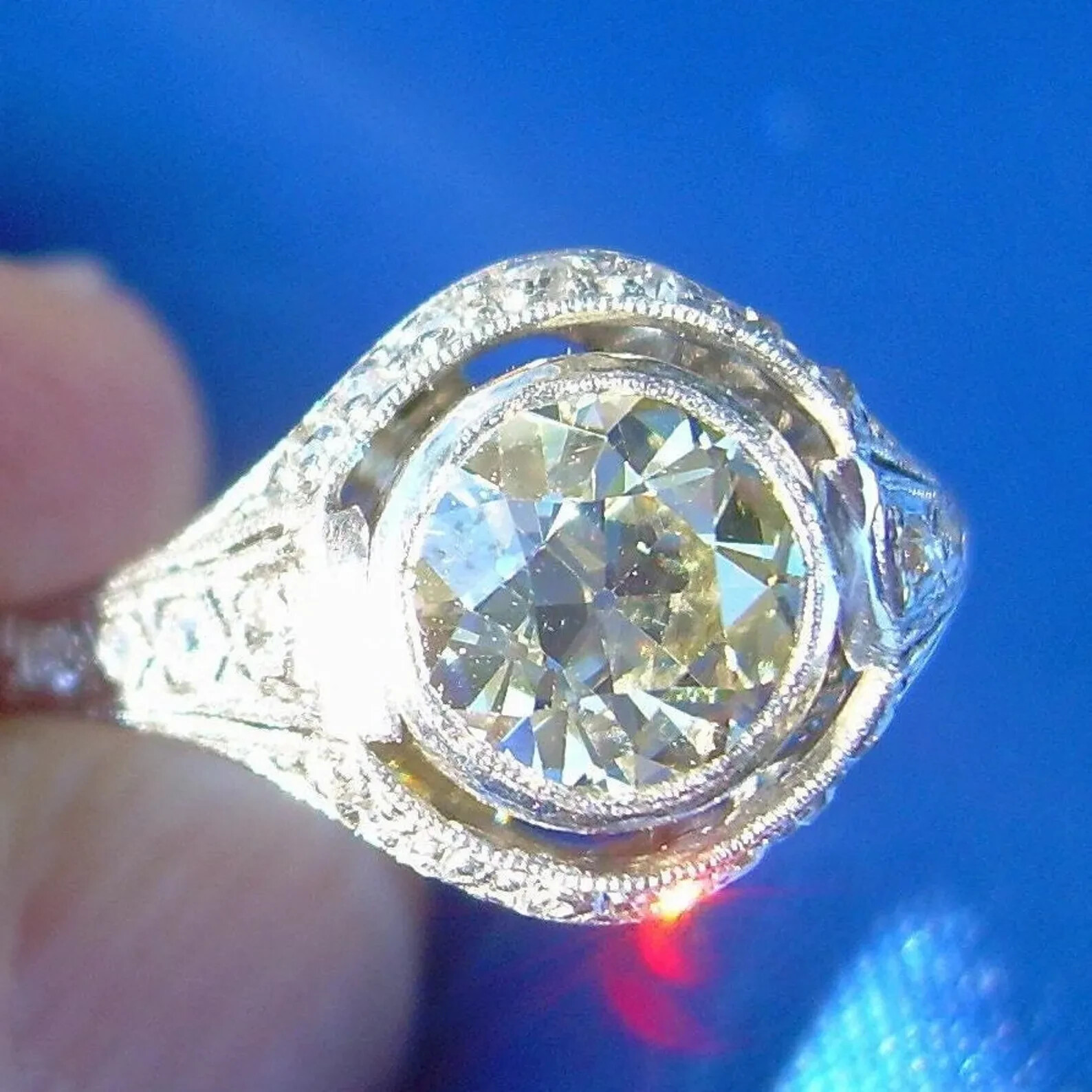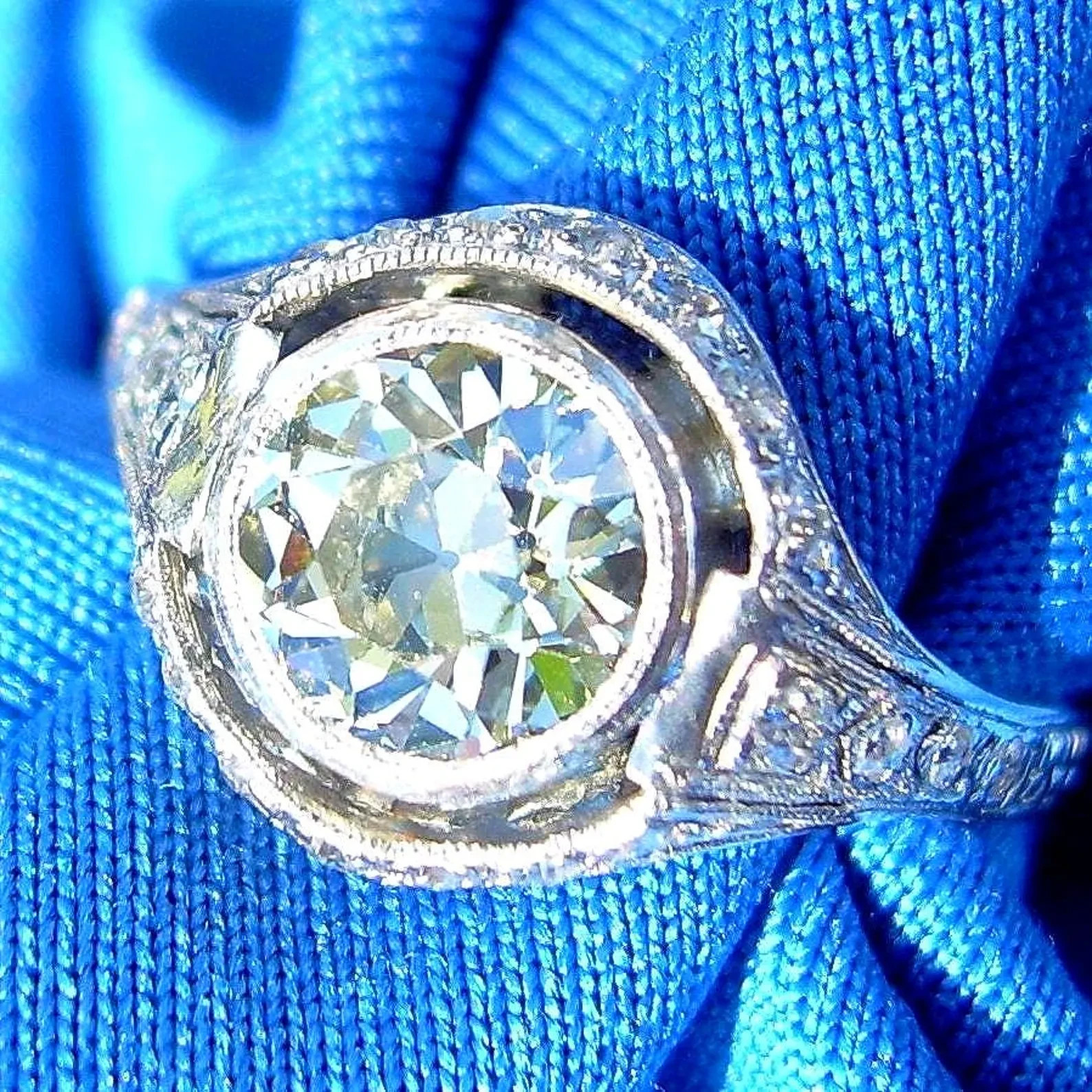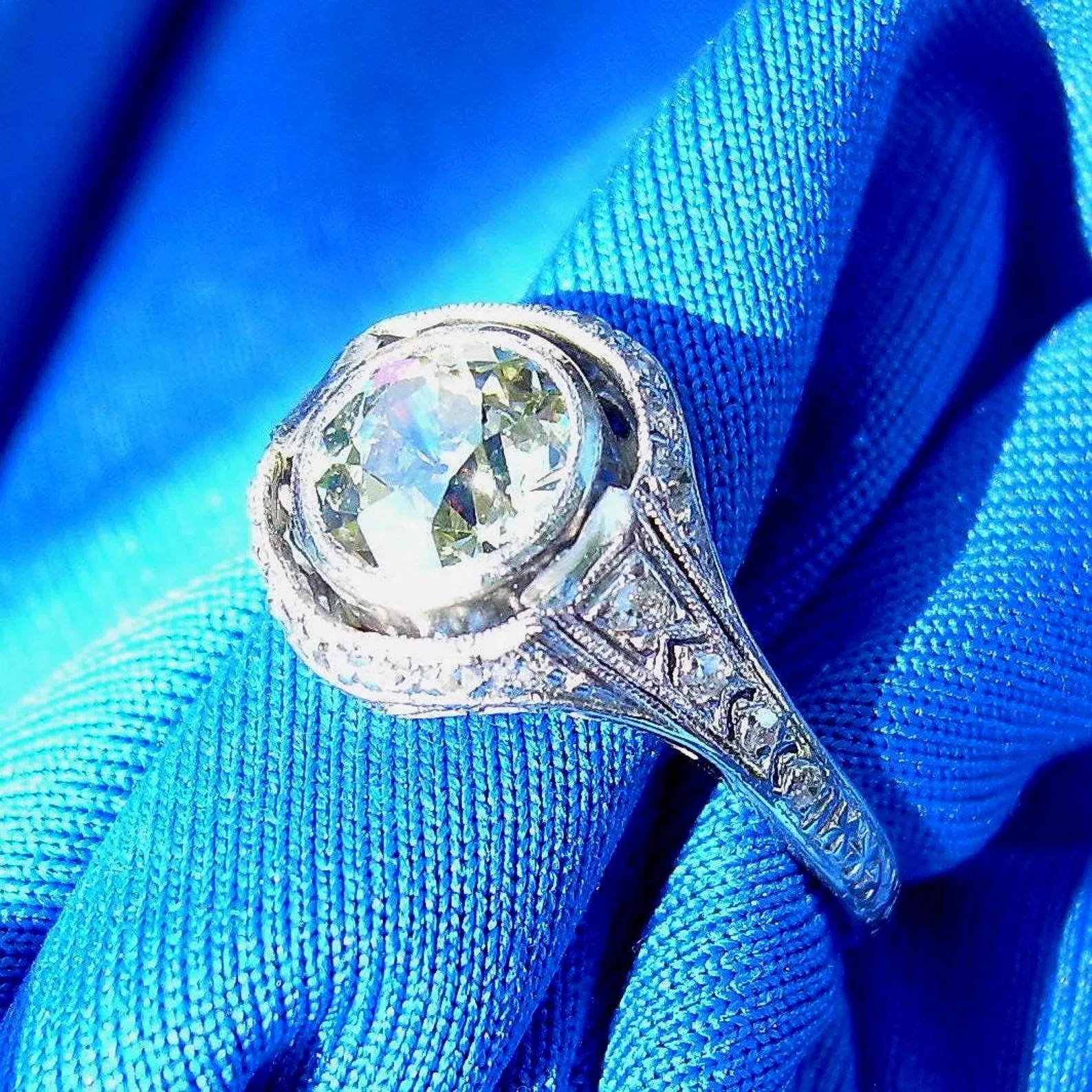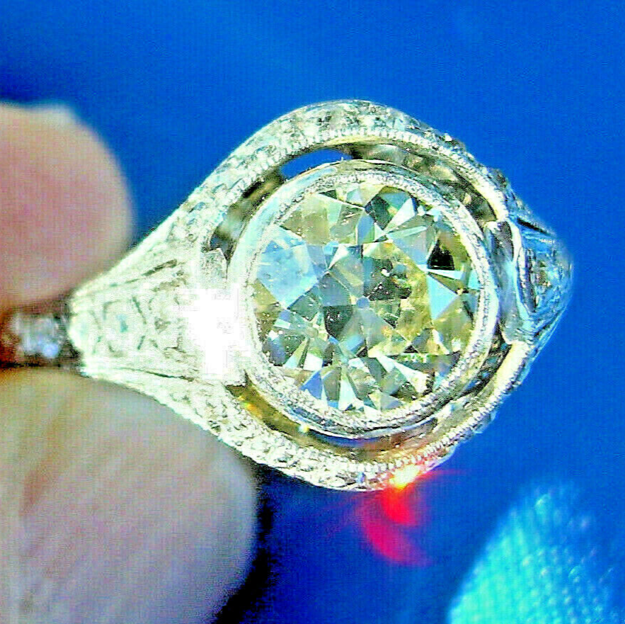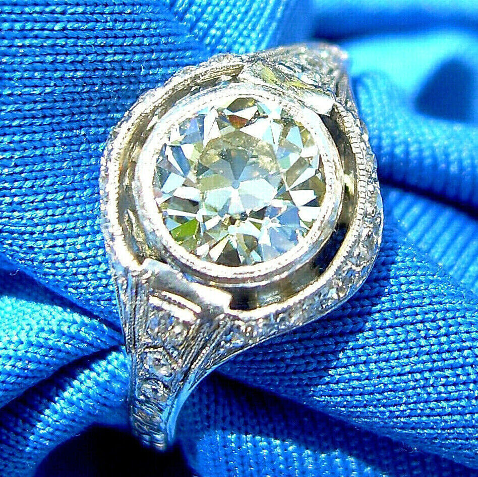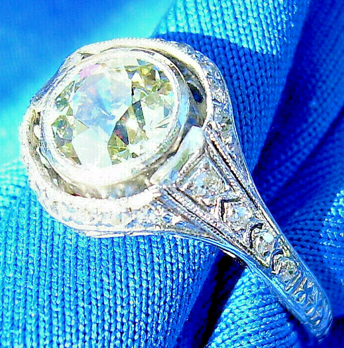 Earth mined Diamond Deco Engagement Ring 1.71 Carat Vintage Platinum Solitaire
