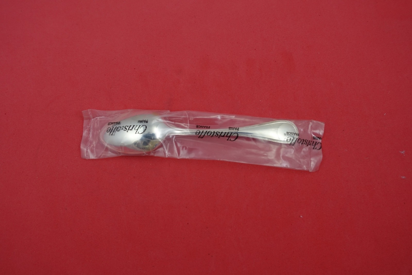 Silverplate Coffee Spoon, new in factory seal 5 3/8" in the pattern Perles by Christofle. It is not monogrammed and is in excellent condition.