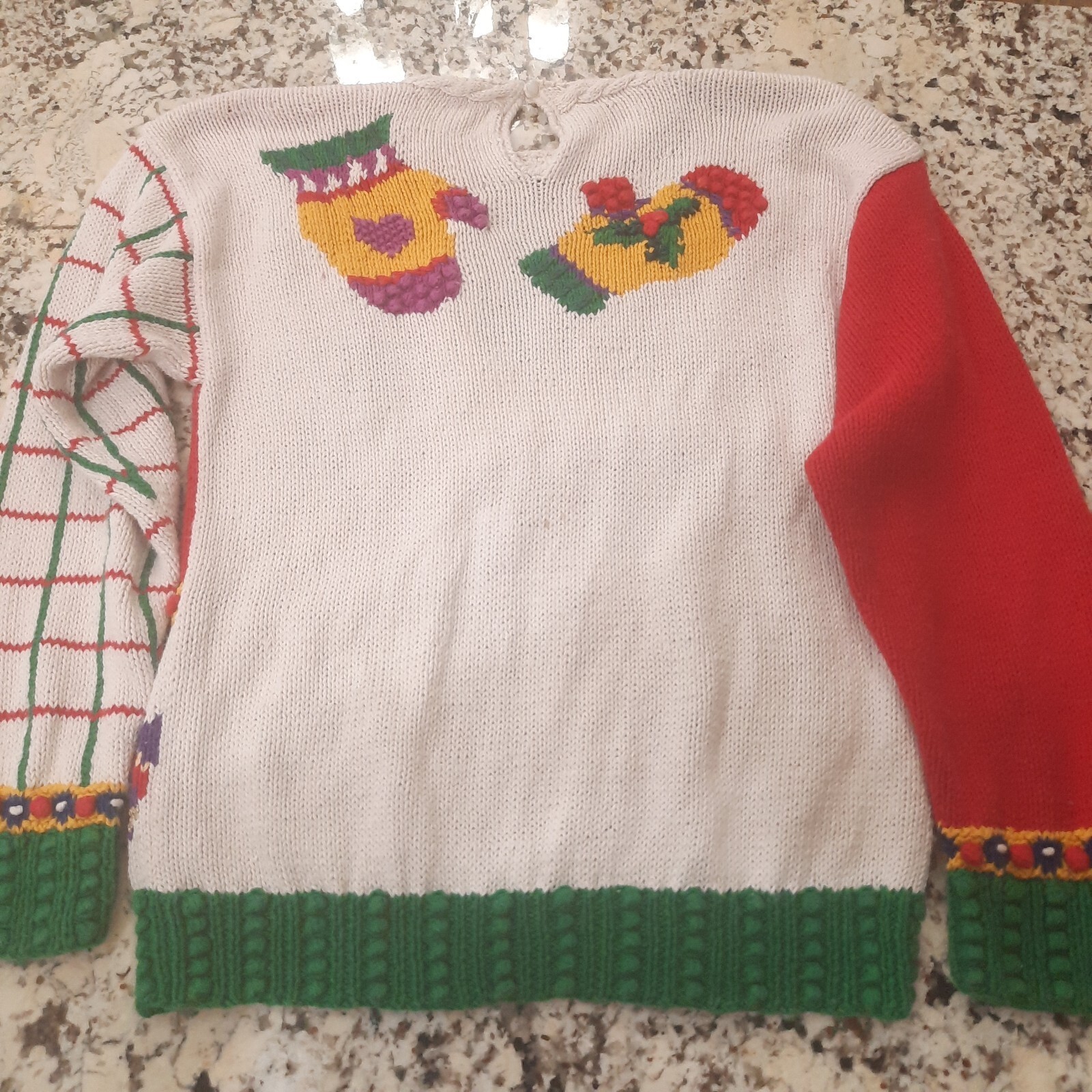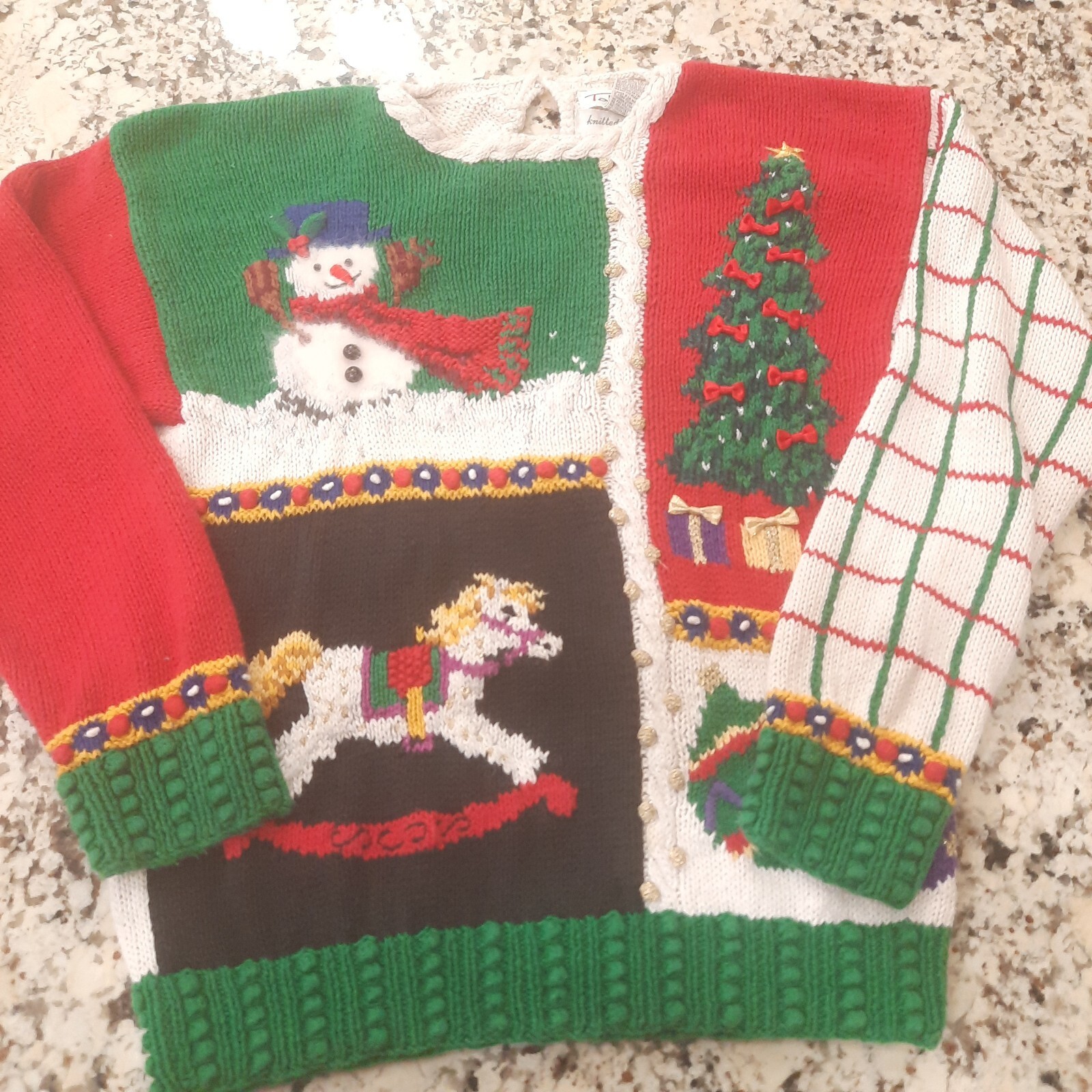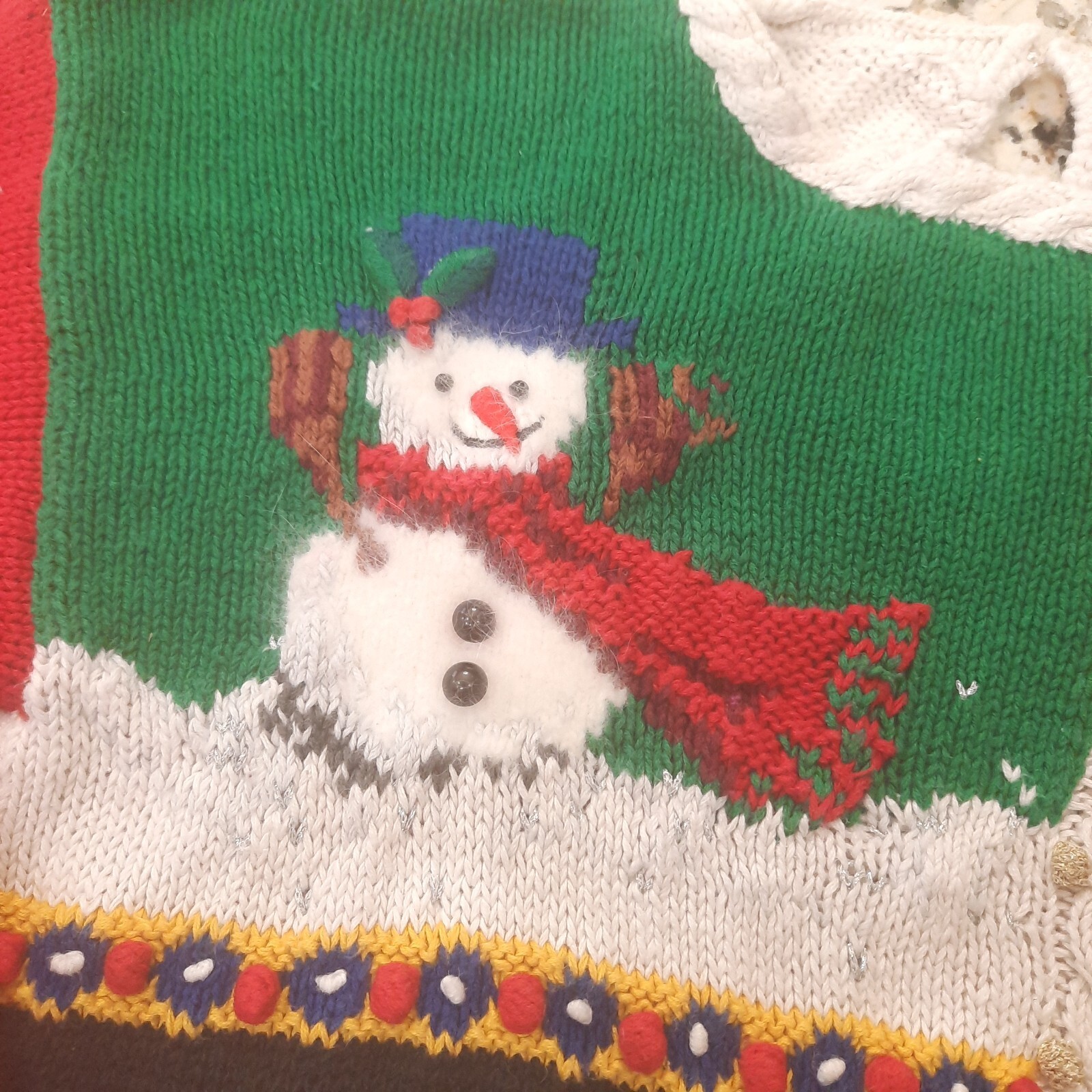 Vintage Talbots Christmas Sweater women small? snowman tree mittens Hand Knitted