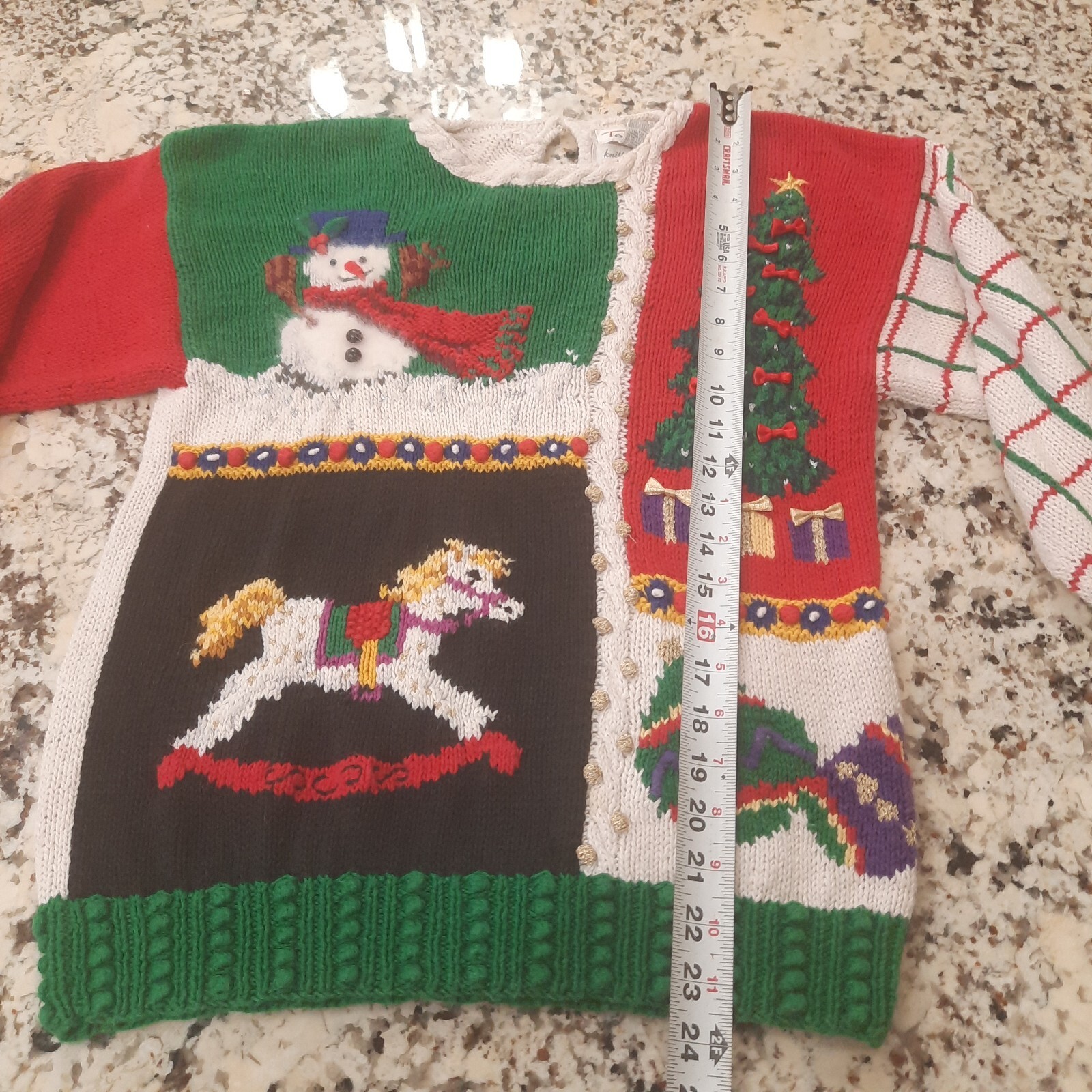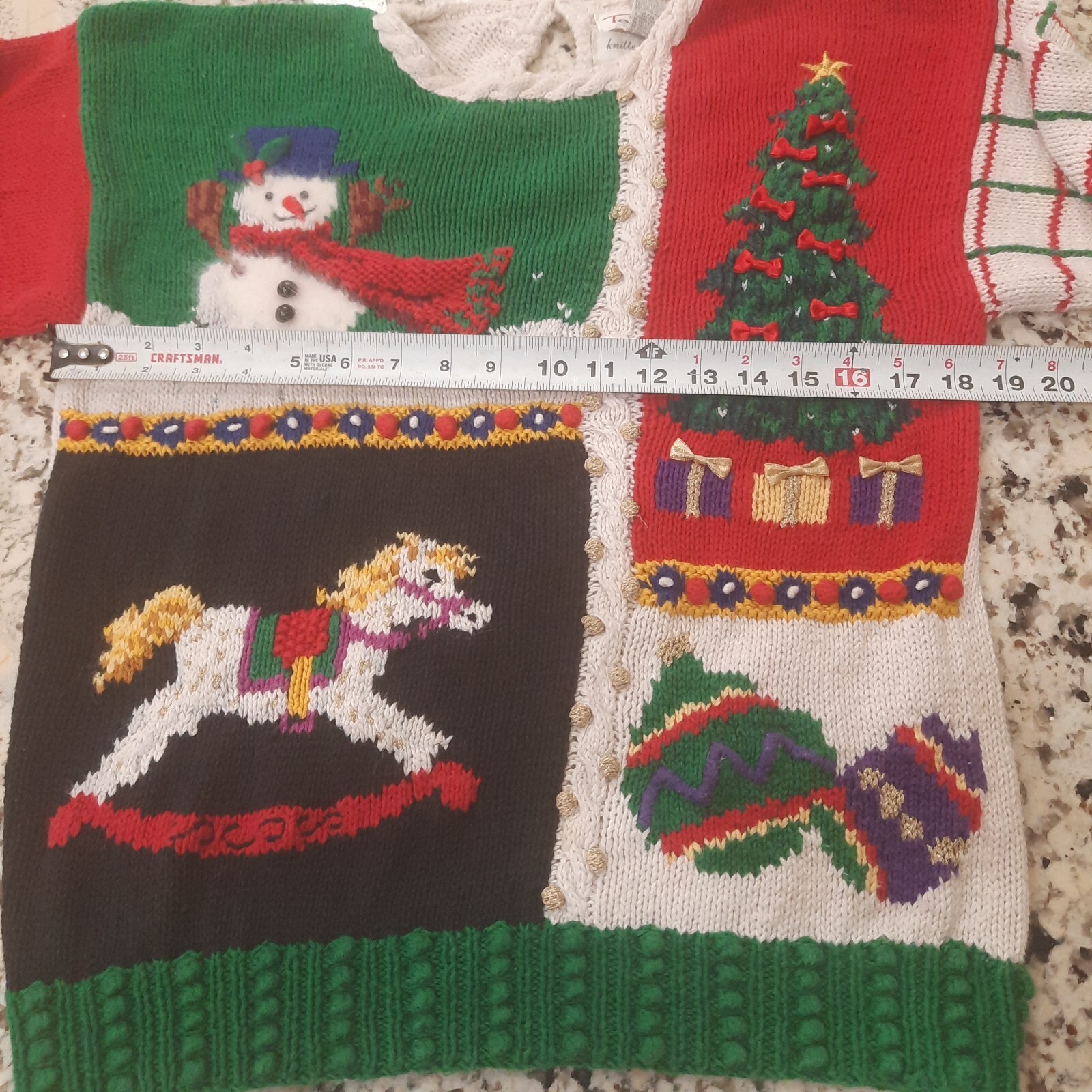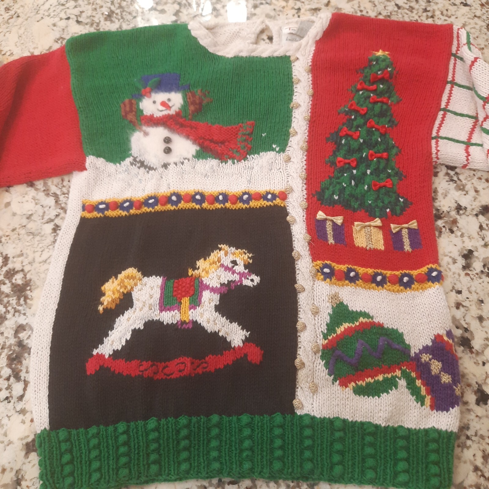 Vintage Talbots Christmas Sweater women small? snowman tree mittens Hand Knitted