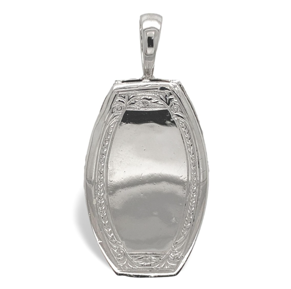 The case has been tacked closed and is hand engraved. There are sixteen small round cut diamonds that measure about 1.5mm. The pendant measures 1 3/8" long with bail and 5/8" wide. The pendant weighs 4.43 dwt., and dates from about 1900 with a new bail and opal. Amazing piece!