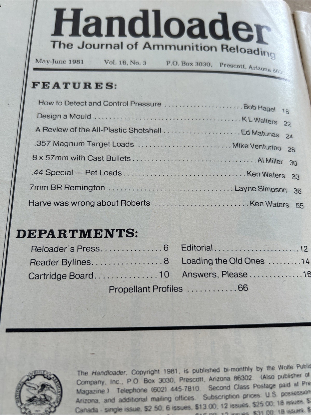 HANDLOADER RELOADING JOURNAL MAY - JUNE 1981