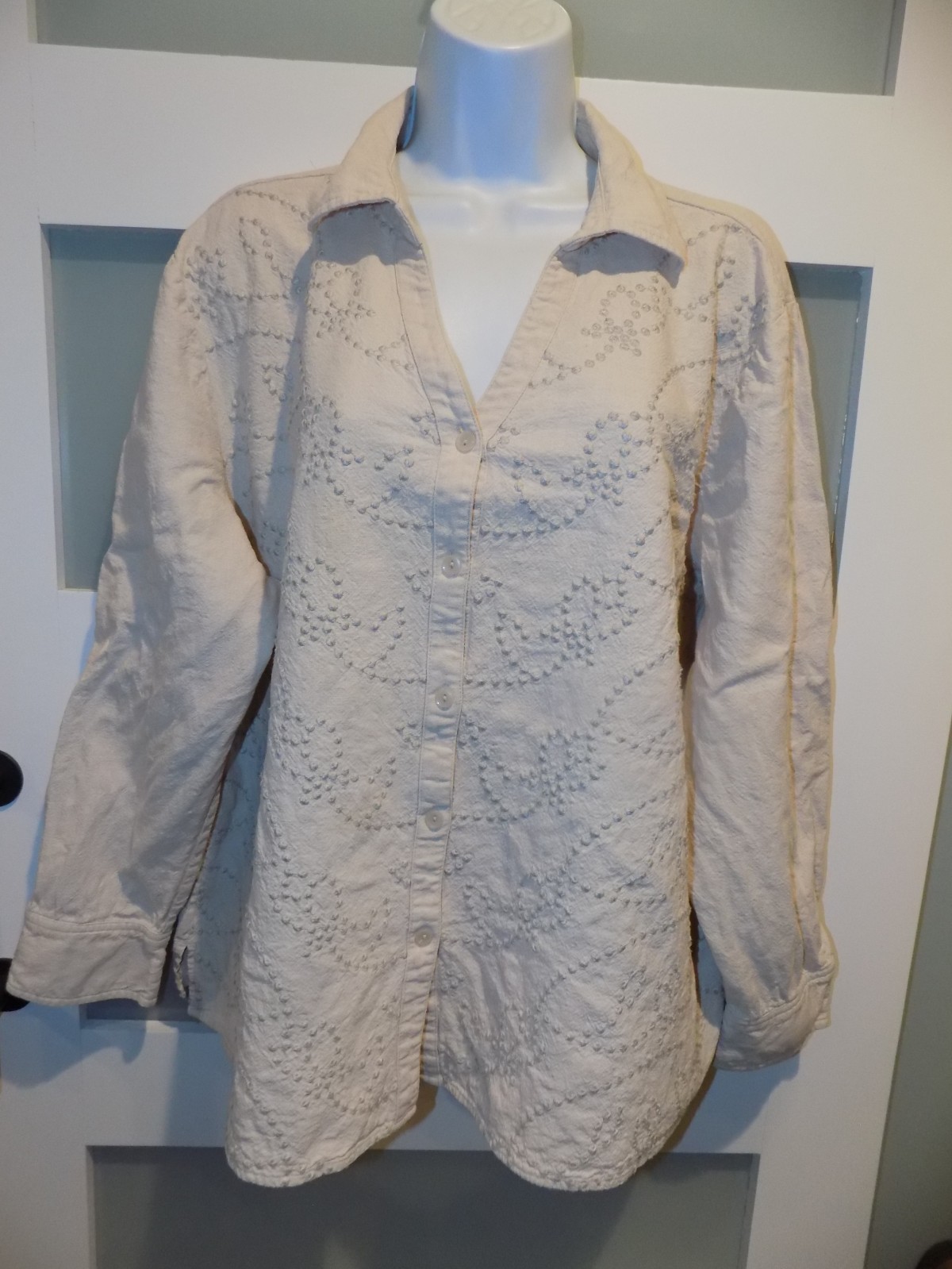 C.J. Banks Bone Color Linen Blend Embroiderd Button Up Blouse Size 2X Women's