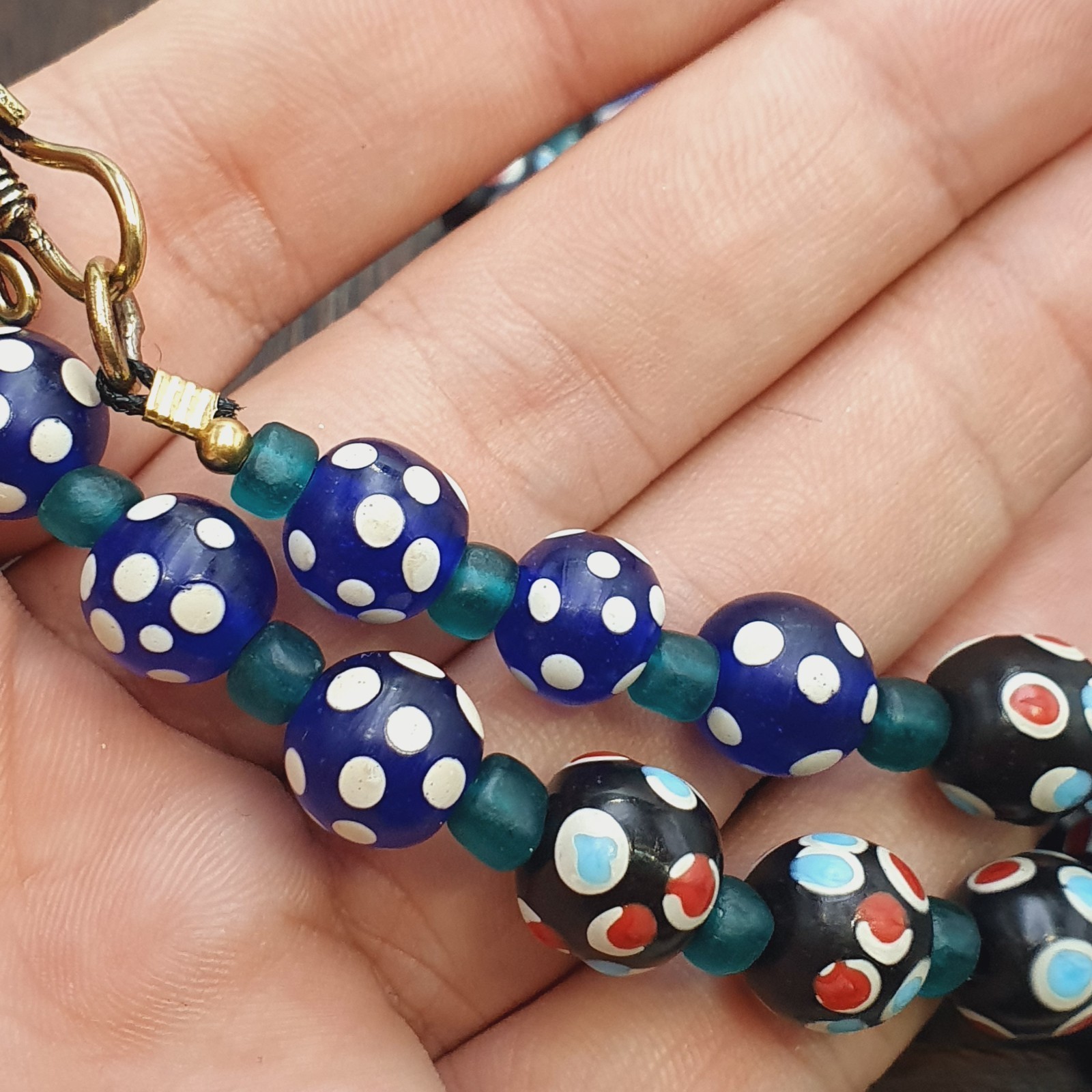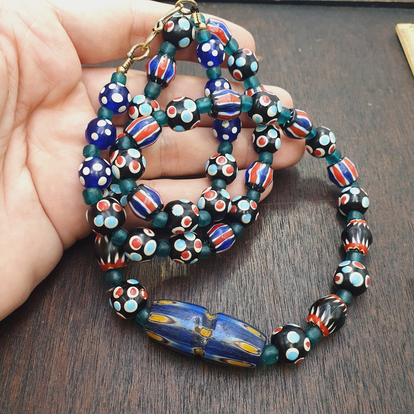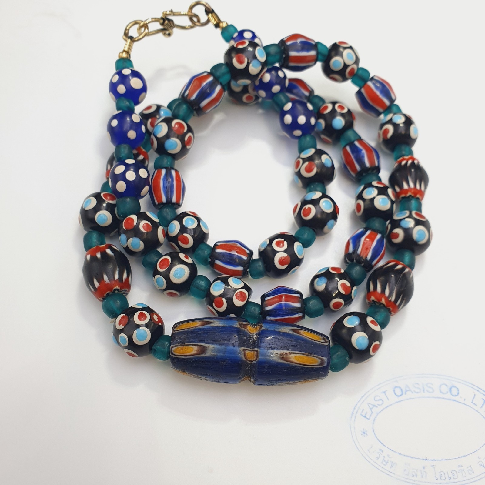 Collana Vintage Chevron Stile Veneziano Skunk Pois Vetro Perline OC-1