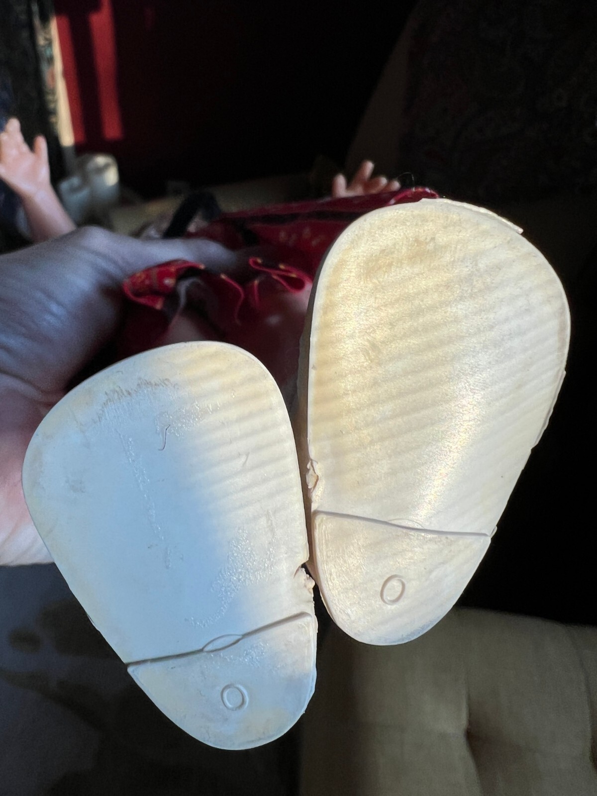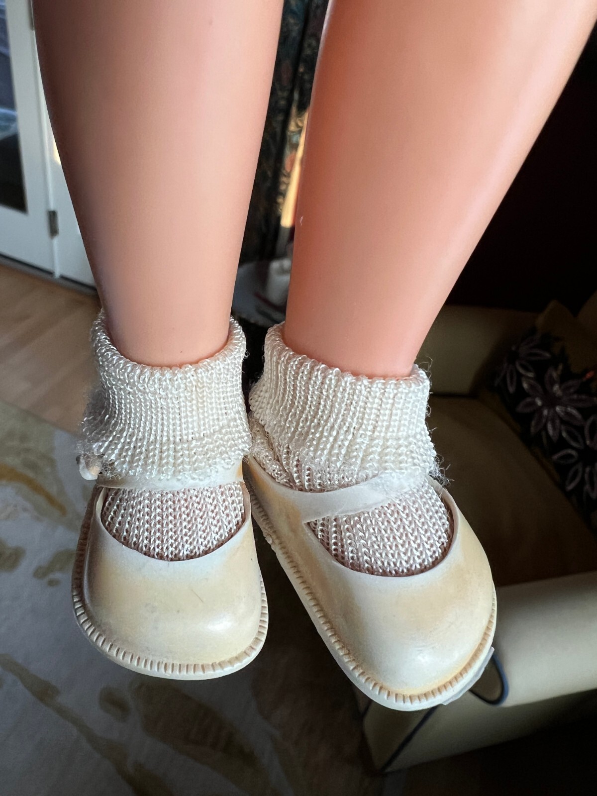 but again, no tags.Socks and shoes were on her, but again, don't know if they are original. See photos.