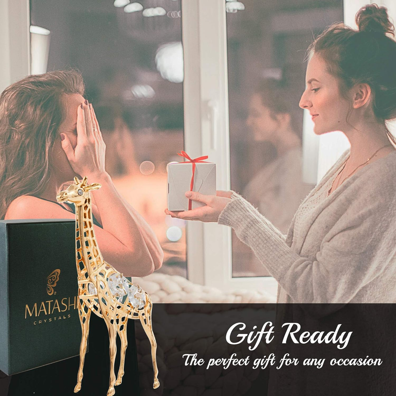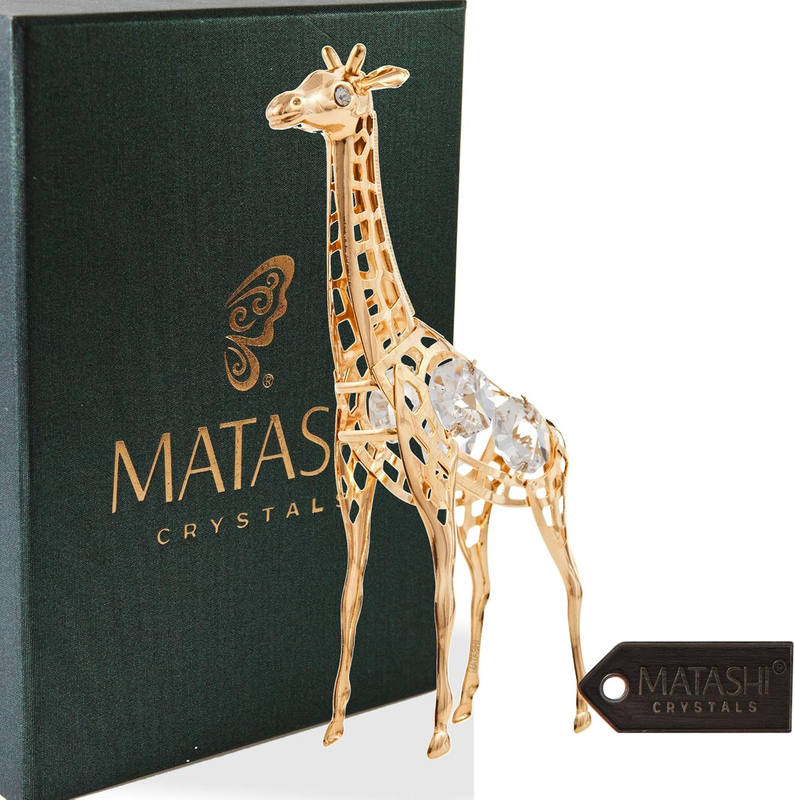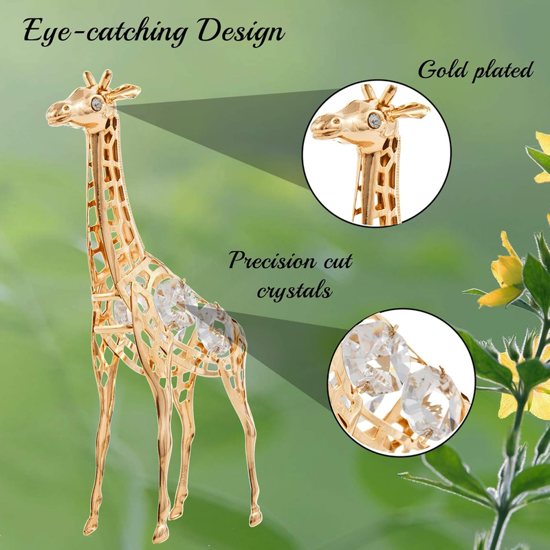 EYE-CATCHING DESIGN: The regal long necked giraffe stands tall and is sure to add some sparkle to your life; Crafted with quality materials like 24K Gold and studded with precision cut Matashi crystals.