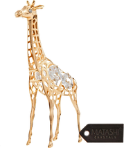 The regal long necked giraffe stands tall and is sure to add some sparkle to your life; Crafted with quality materials like 24K Gold and studded with precision cut Matashi crystals.