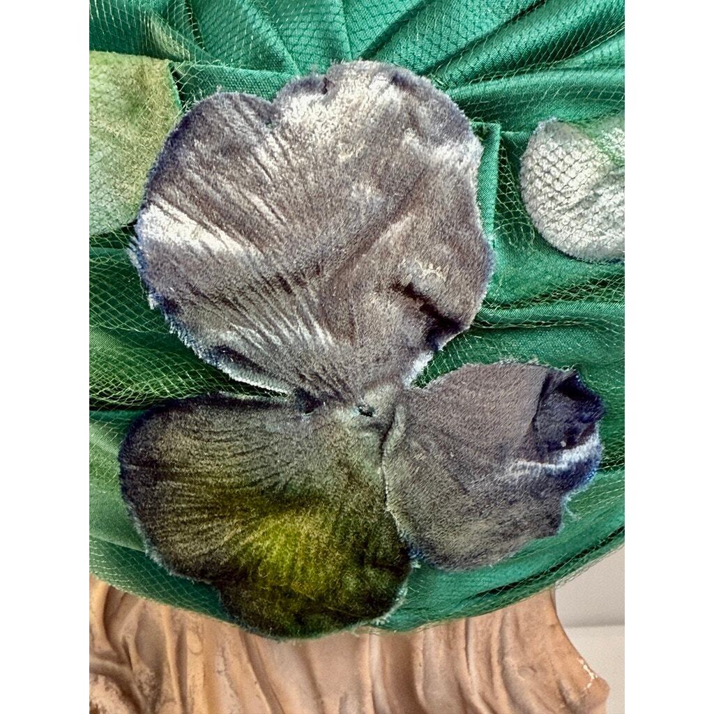 VTG 50s Hat Rozanne Of New York Emerald Green Pillbox Velvet Pansies Floral Sz S