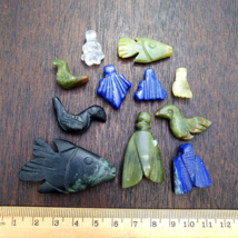 11 Stck. Vintage Lapislazuli, Jade Kristall Stein Vögel Fische Amulette...