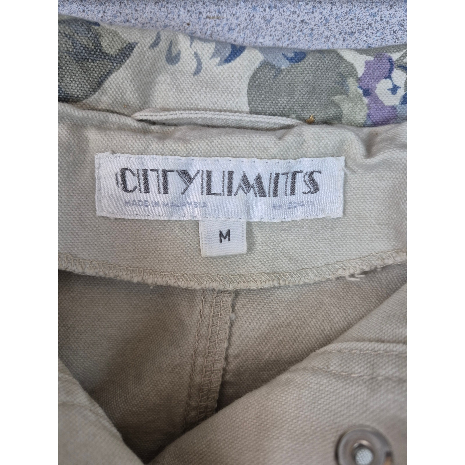 VTG 80s 70s Y2K City Limits 100% Cotton Denim Jacket Beige w/Contrasting lavender Floral Accents M in very good vintage condition except for the elastic in the waistband, it is "crunchy"..