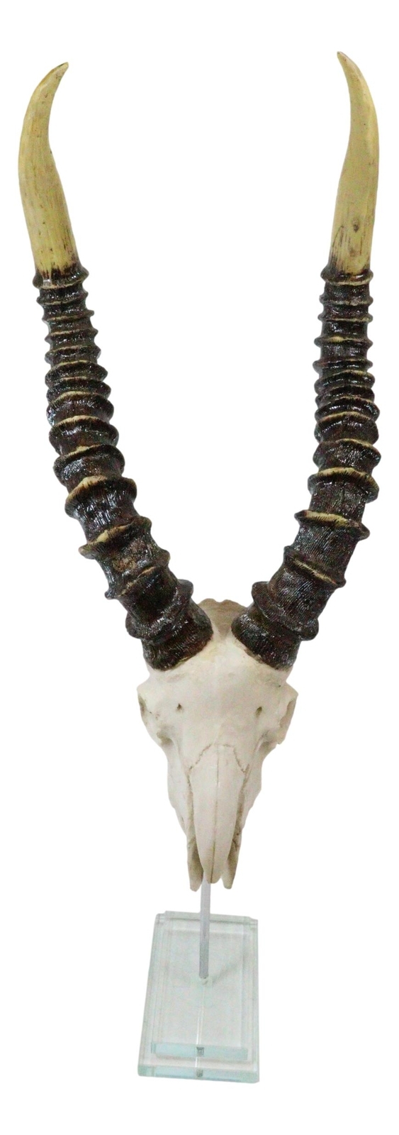 ? This Vintage Aged Kudu Antelope Skull Decor Plaque On Museum Mount is made of designer composite resin, hand painted and polished individually. Color Tone may vary slightly from photos.