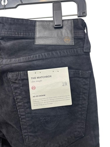 AG Adriano Goldschmied Men Matchbox Slim Straight Corduroy Pant Black 28W X 34L