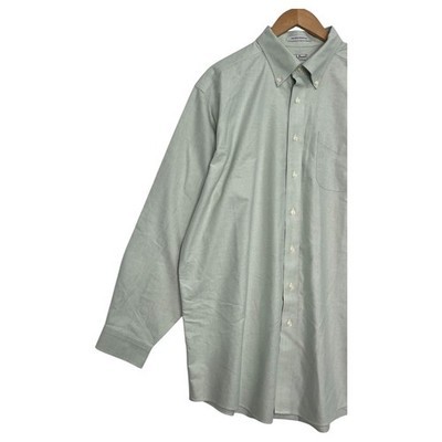 LL Bean Shirt Mens 17.5 36 Green Wrinkle Resistant Button Down Long Sleeve