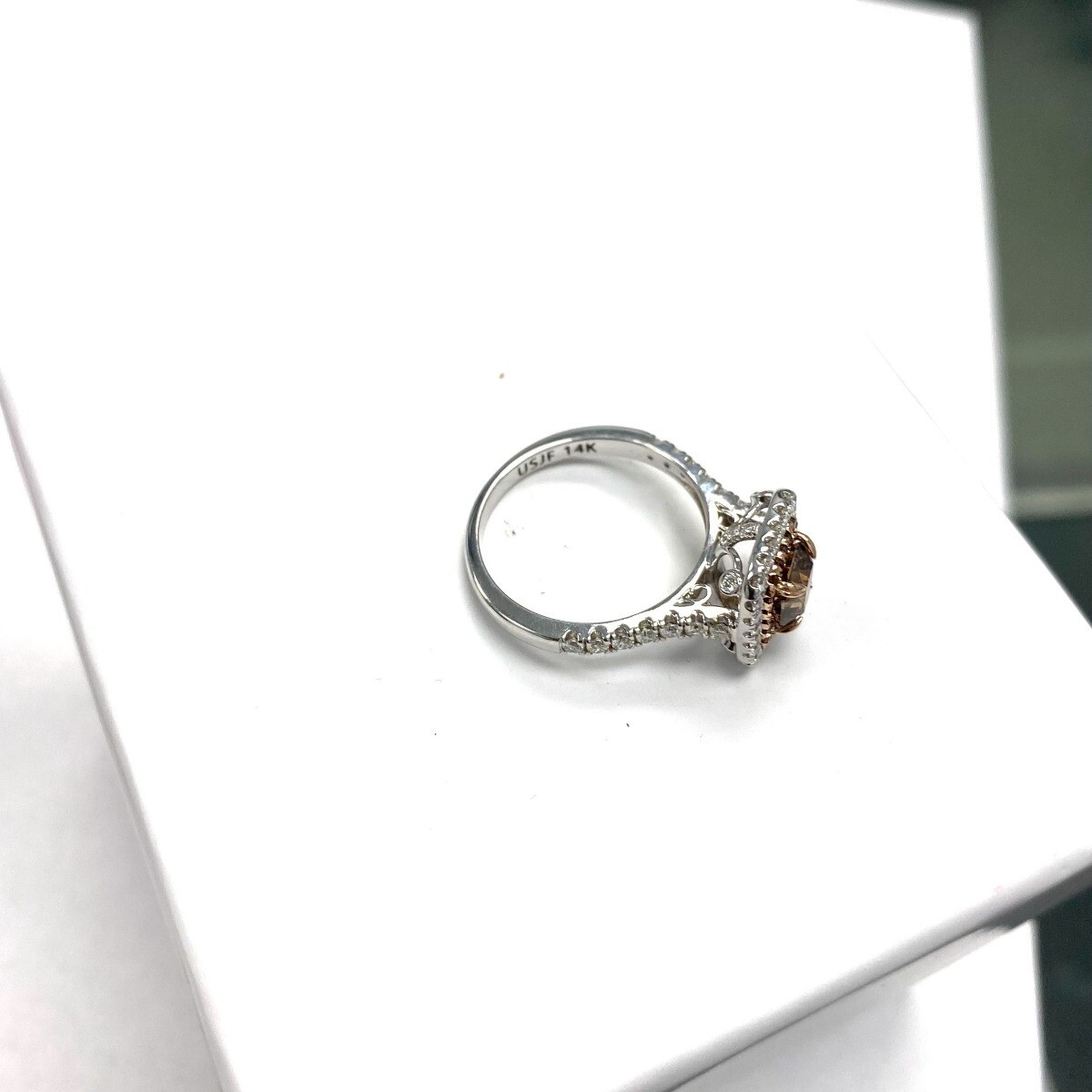 GIA Certifie 1,88 Ct Cushion Brown Diamond Engagement Anneau 14K Or blanc