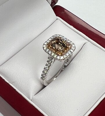 GIA 1.60 CT Coussin Deguisement Marron Jaune Anneau Fiancailles Diamant 18k Or