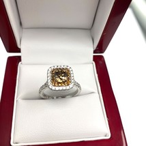 Certifie GIA 3.72 Carat Marron Coussin Anneau Fiancailles Diamant 14k or Blanc