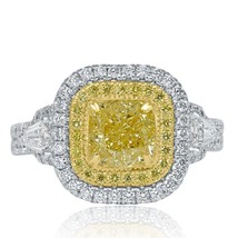 Certifie GIA 2.18Ct Lumiere Jaune Coussin Fiancailles Diamant Bague 18k or Blanc