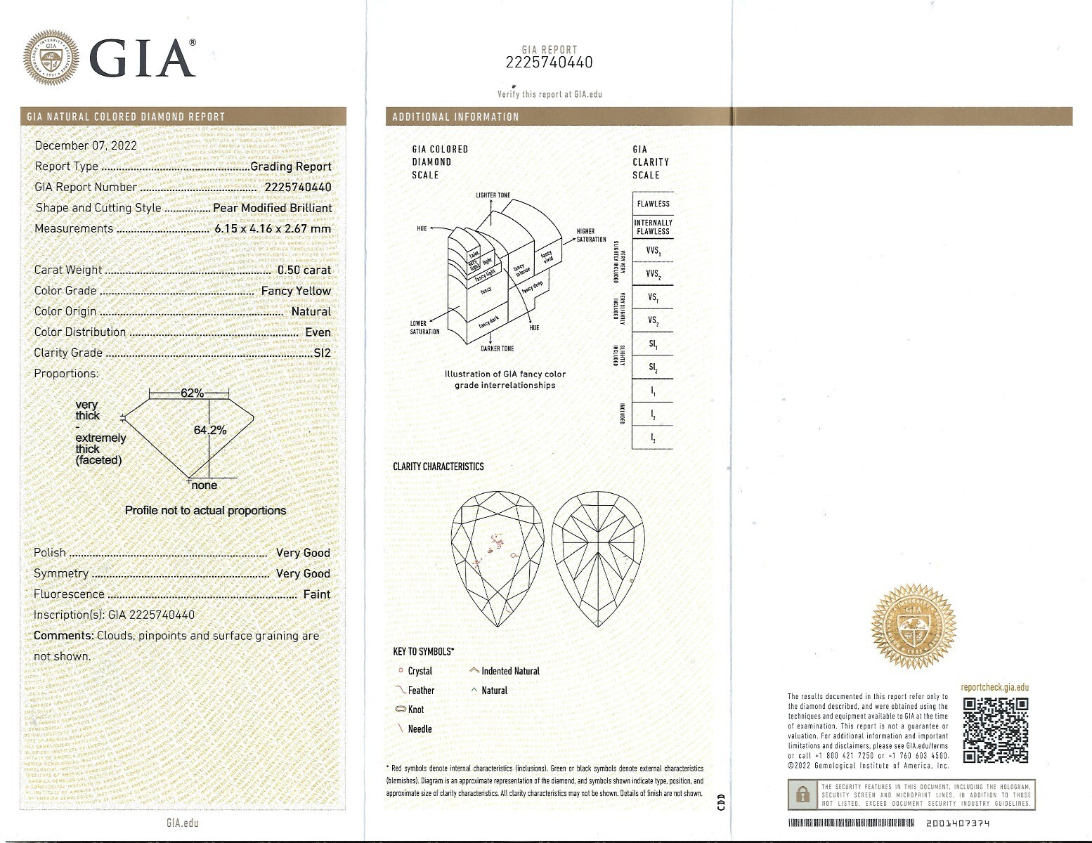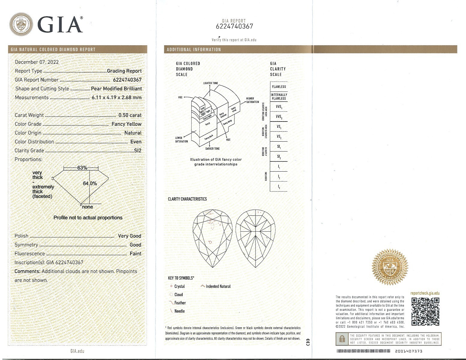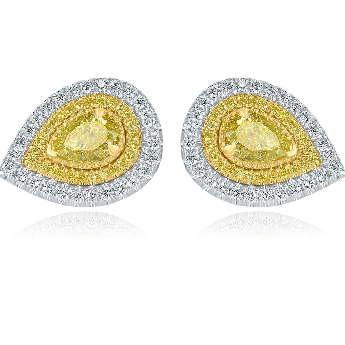 Gia 1,62 CT Pear Natural Fancy Yellow Diamond Moucles d'oreilles 18k Gold