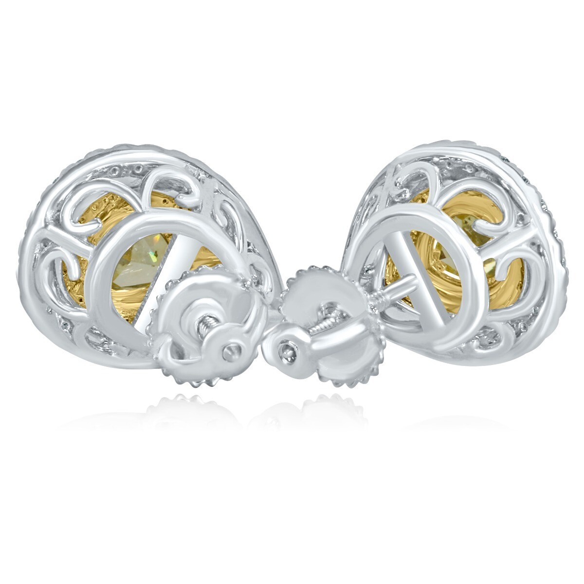 Les charmantes boucles d'oreilles ajouteront de la magie a un moment special! Ces boucles d'oreilles disposent de GIA Certifie 1,00 Carat PEUR BRILLIANT COUPE NATUREL SANKE JAUNE CENTRES CENTRES ENTERE Entoure d'un halo de diamants coupes ronds incolores et jaunes en micro-pave. Fabrique a la main en or multi-ton 18k et fixe avec fermeture a vis. Le poids total des carats est de 1,62 carats.