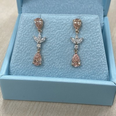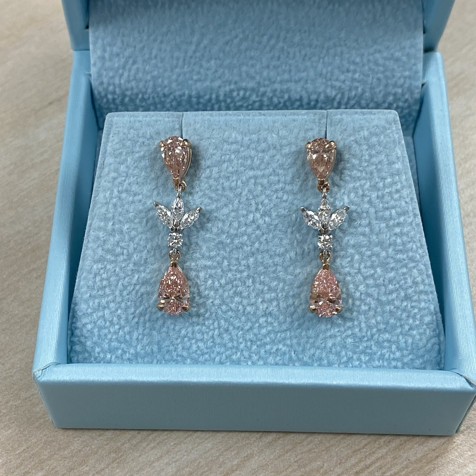 1.56 Carats Poire Labo Grown Chic Intense Diamant Rose Boucles D'Oreilles 14k