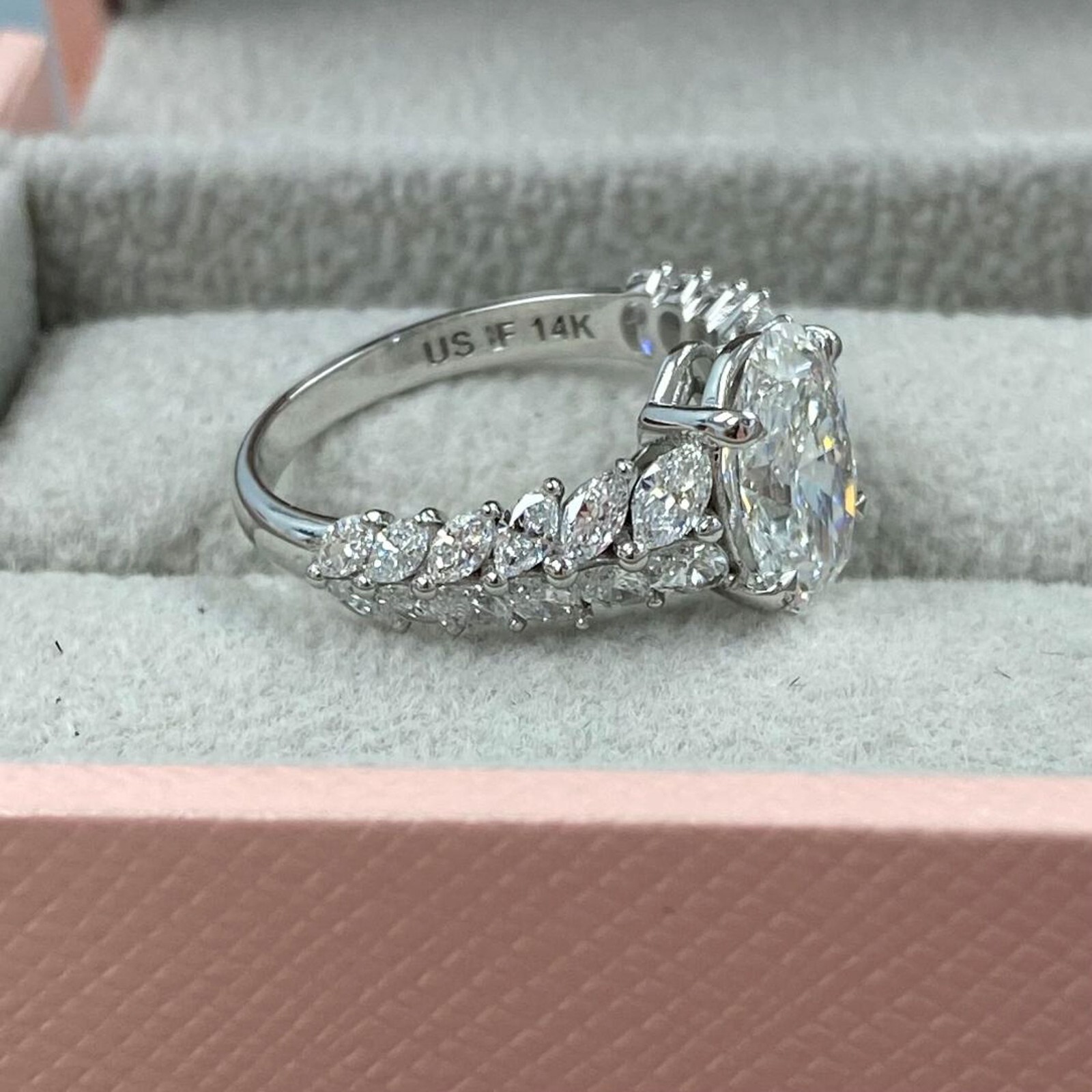3.46 Cts (2.04) Igi Ovale Brillant Coupe Labo Grown Bague Diamant 14k or Blanc