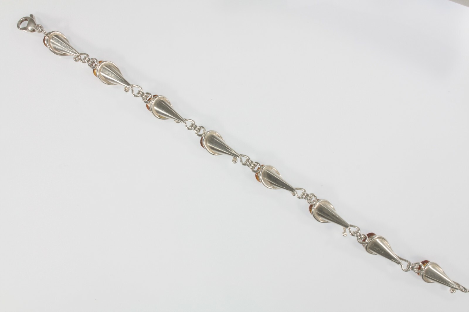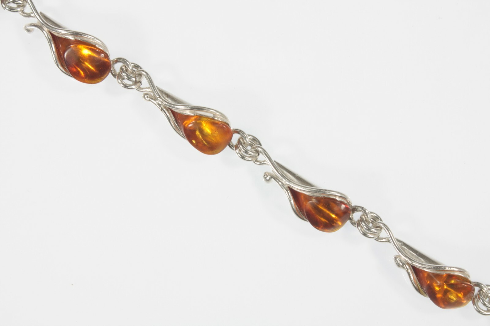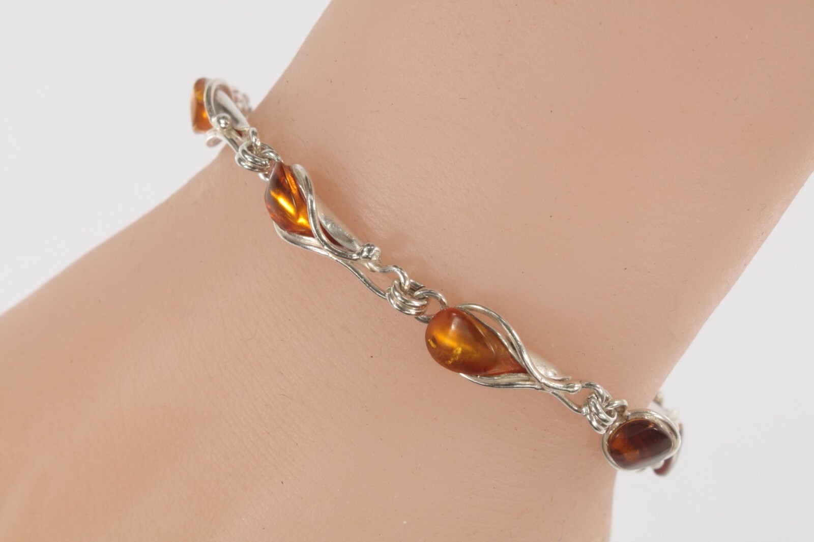 Eight Amber Flower Link Statement Piece Sterling Silver Bracelet 7.50"
